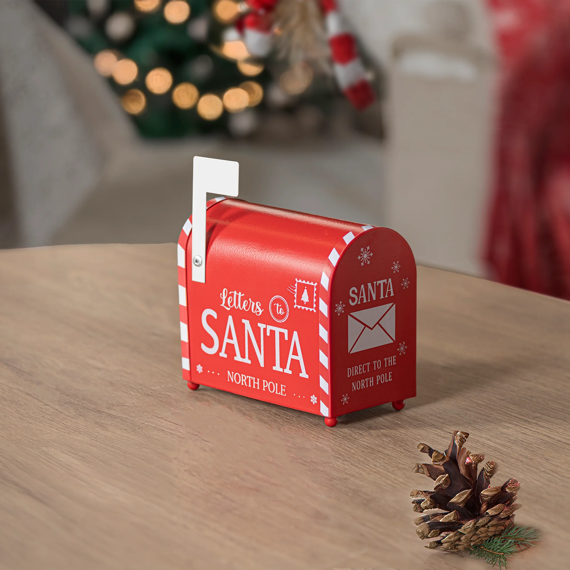 Adorno navideño Buzón, perfecto para decorar y guardar tus cartas a Santa; solo escribe la tuya, colócala dentro… y deja que la magia comience.