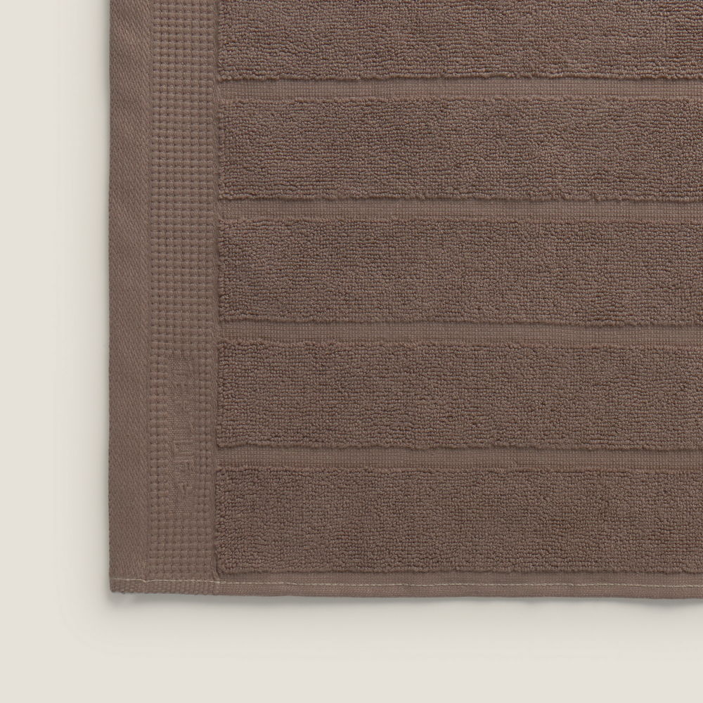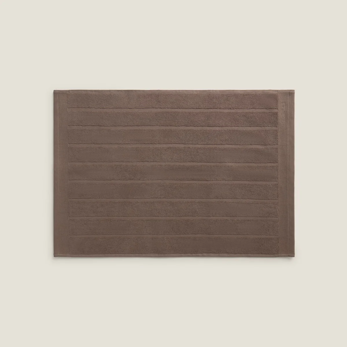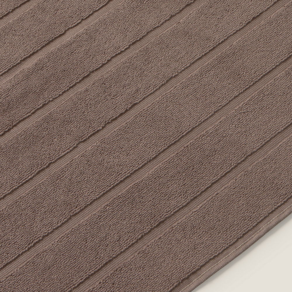 Alfombra de baño de rizo de algodón egipcio de 700 g. Diseño de rayas en relieve. Confeccionada en Portugal.
