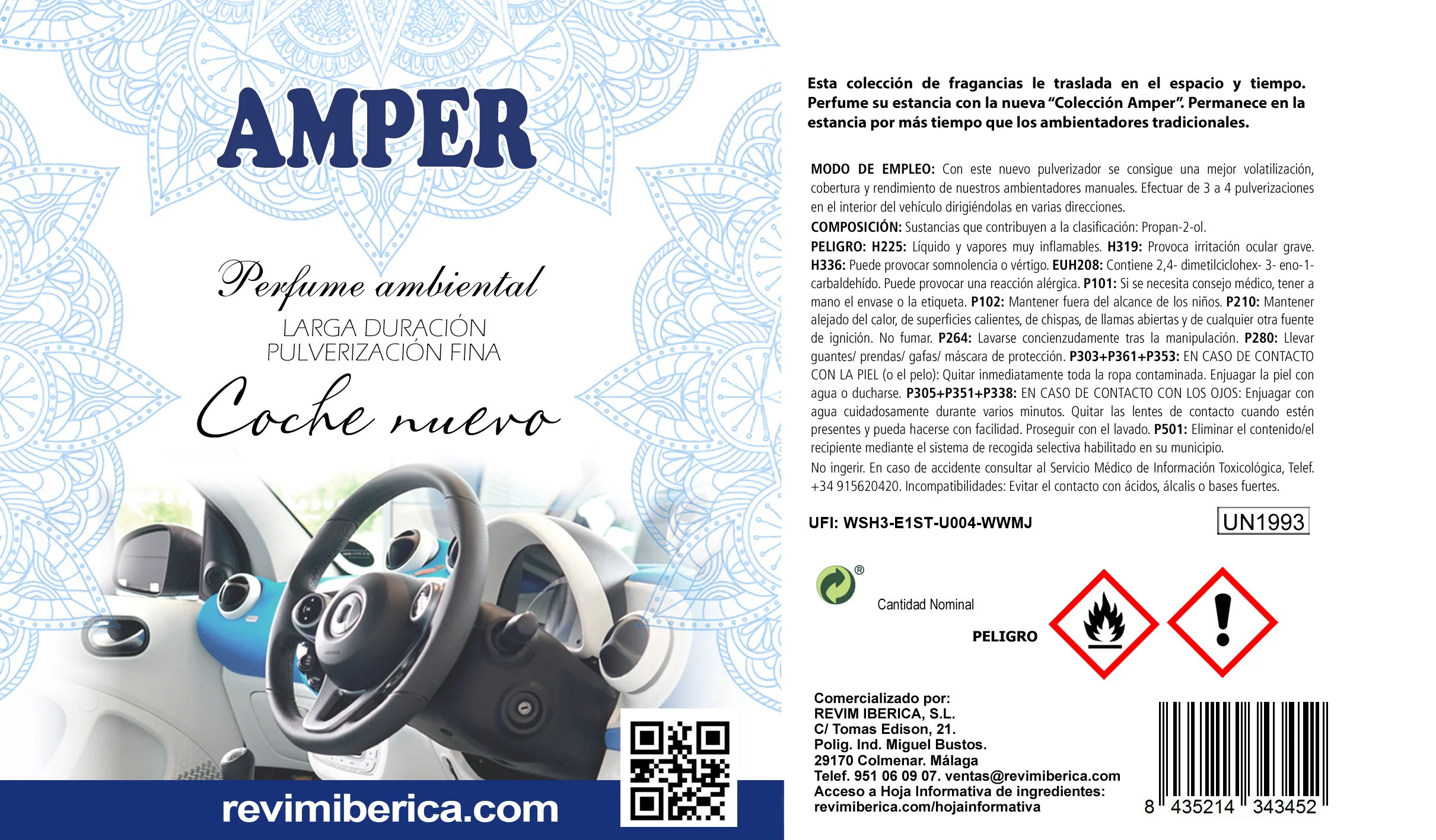 Ambientador Coche Nuevo AMPER está diseñado para neutralizar malos olores persistentes en el interior del vehículo y devolverle un aroma fresco, suave y duradero, como recién salido del concesionario.