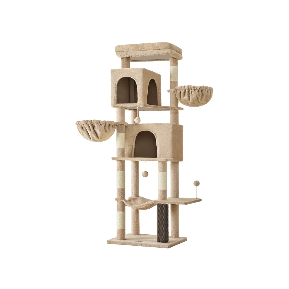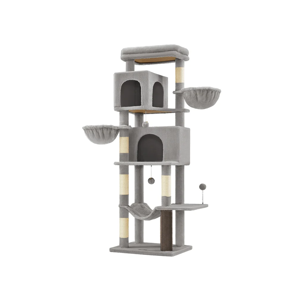Feandrea Árbol para Gatos, Torre para Arañar de 175 cm de Altura, Multinivel con 2 Cuevas, 2 Cestas, 5 Rascadores, Alfombra, Plataforma, Hamaca, Gris Paloma PCT182G01