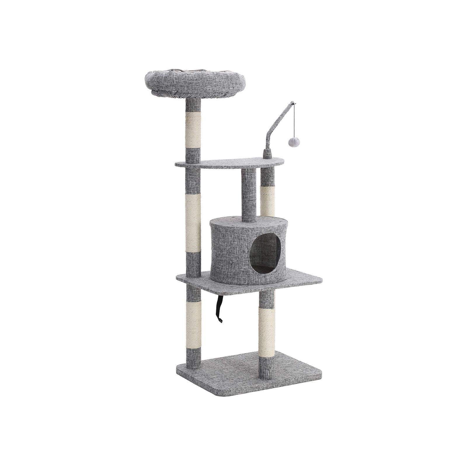 Feandrea Árbol para Gatos, Rascador Multinivel con Postes Recubiertos con Sisal, Nicho Acolchado, Superficie de Tejido de Imitación a Lino, Gris Claro PCT64W