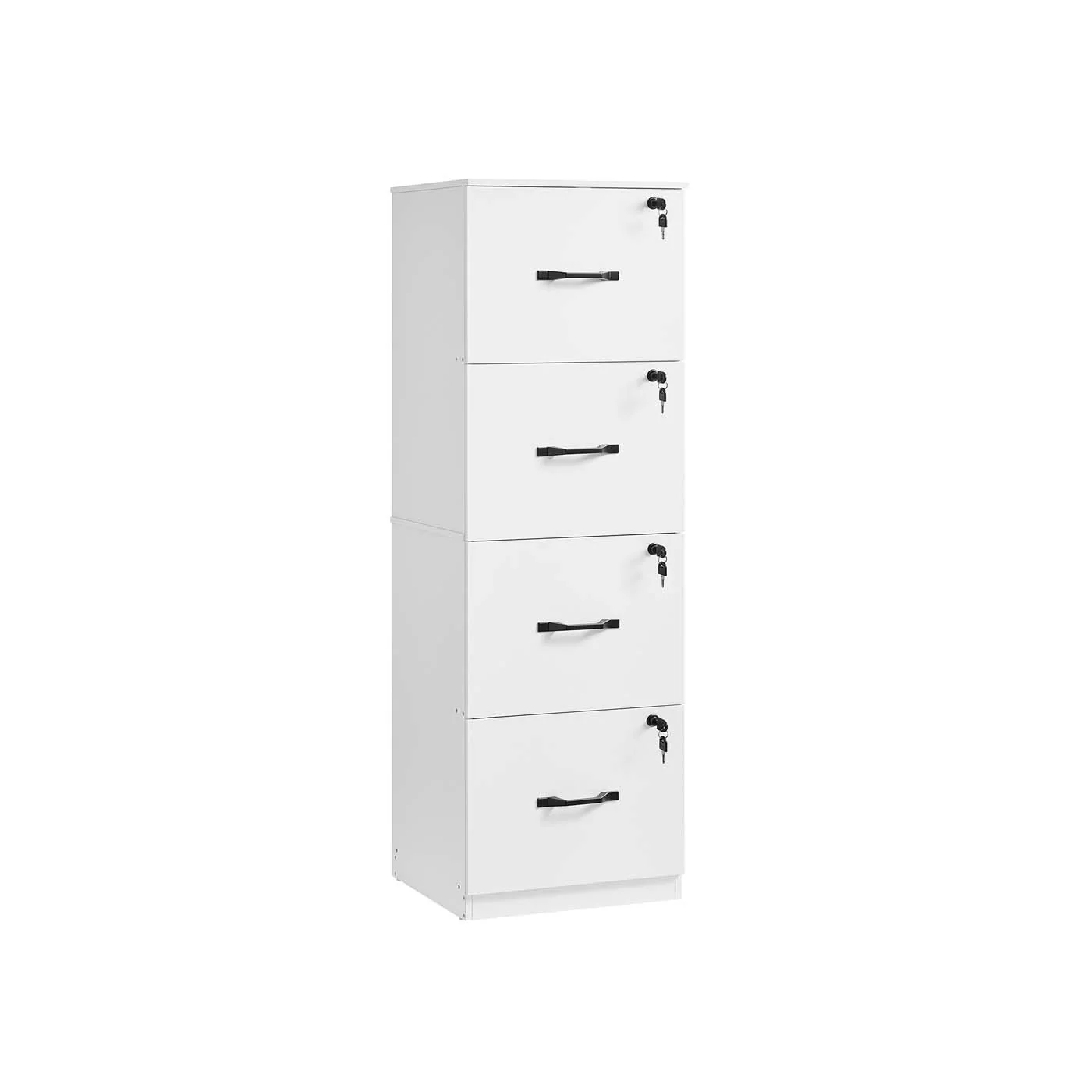 VASAGLE Armario de Oficina, Archivador para Documentos, Soporte para Impresora con 4 Cajones Bloqueables, Riel Ajustable, para Formato A4 y Cartas, Marrón Rústico y Negro Tinta OFC082K02