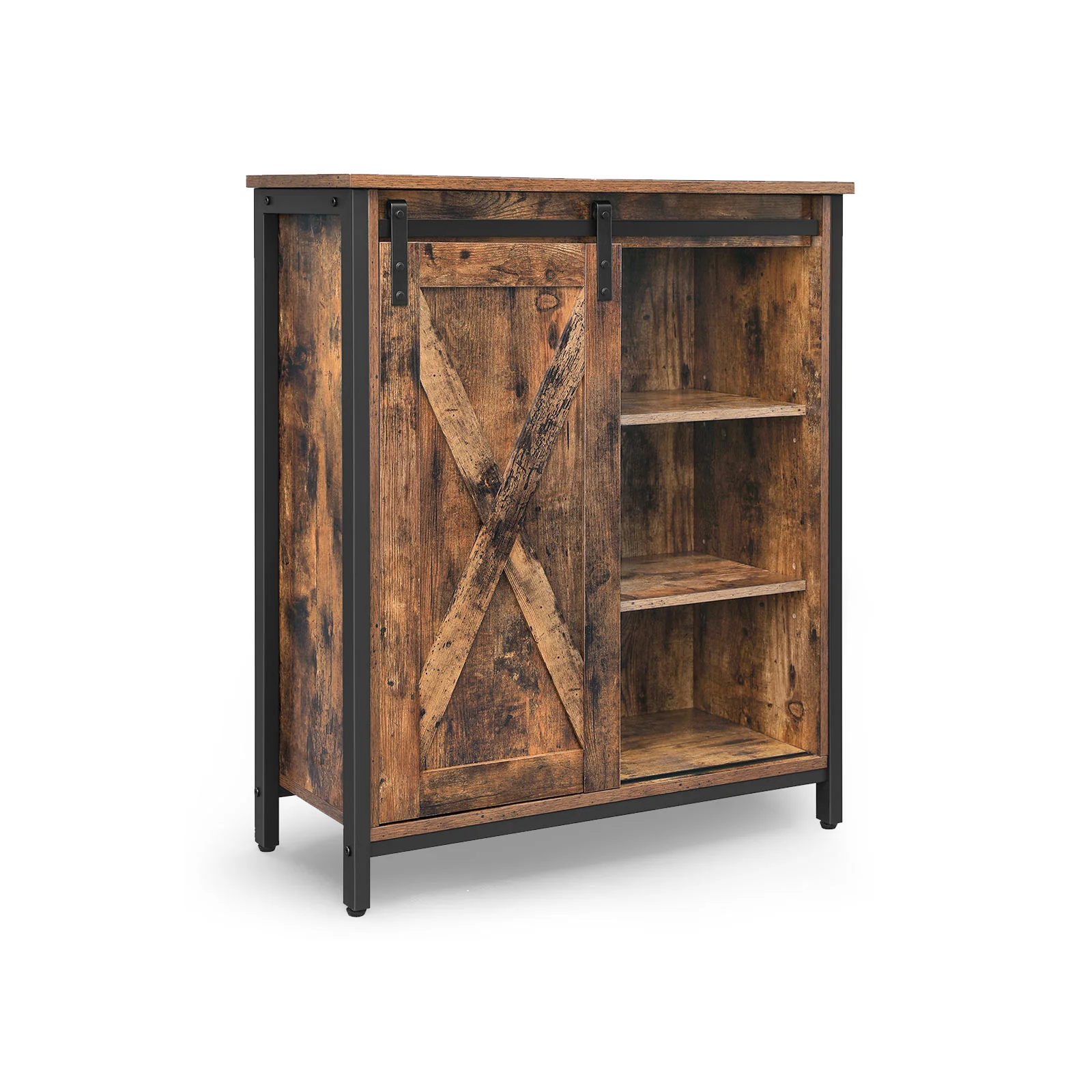 VASAGLE Armario de Almacenamiento, Gabinete de Almacenaje, con Estantes Ajustables, Puerta Corrediza, Marco de Acero, para Salón, Oficina, Cocina, Estilo Industrial, Marrón Rústico y Negro LSC88BX