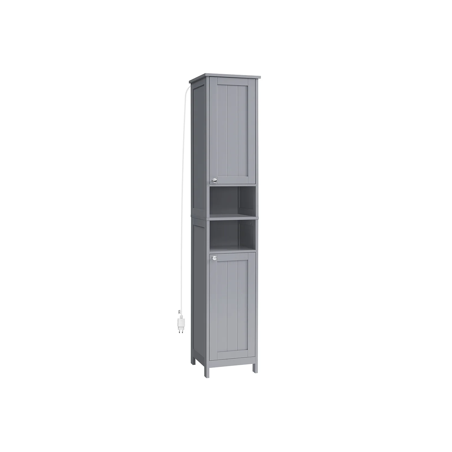 VASAGLE Armario de Baño Alto con Iluminación, Armario de Almacenaje Delgado, con Estantes Ajustables, Compartimentos Abiertos, para Espacios Pequeños