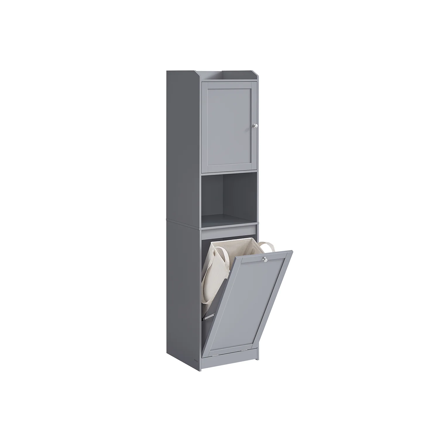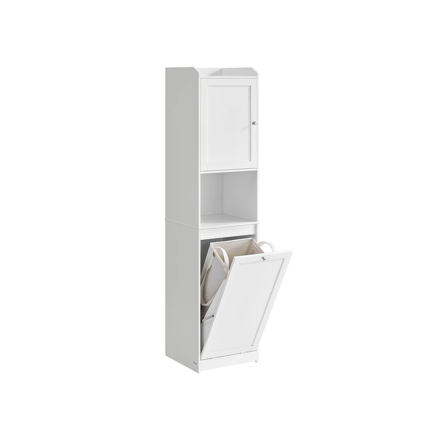 VASAGLE Armario de Baño con Cesto Ropa Sucia, Armario Alto de Baño, Bolsa de Ropa Extraíble con Asas, Compartimento con Puerta, Mueble de Baño, 40 x 40 x 170 cm, Blanco Nube BBC761W01
