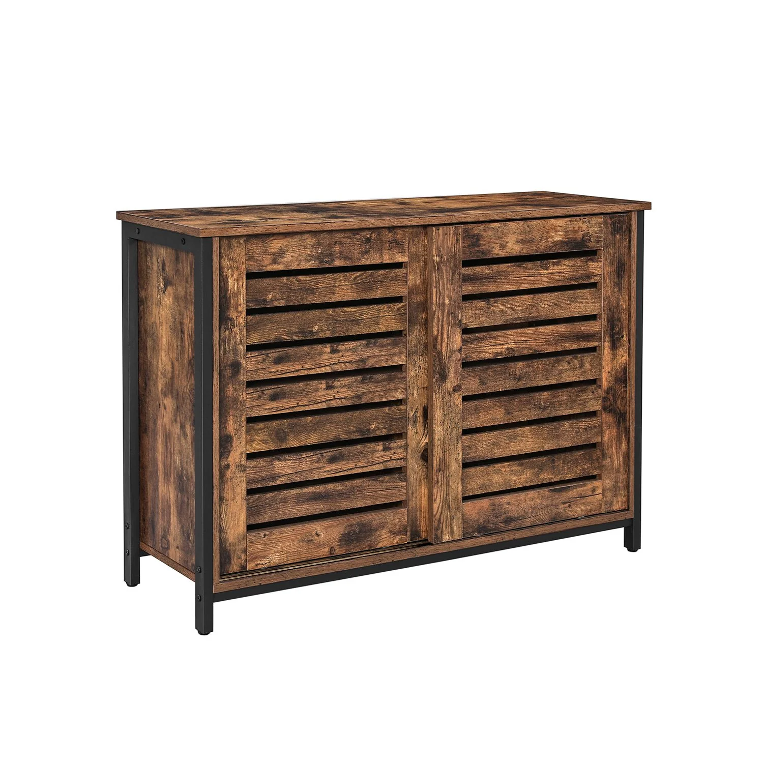 VASAGLE Aparador, Armario de Cocina con Puertas Corredizas, Cómoda, Sala de Estar, Vestíbulo, Cocina, Oficina en Casa, Estructura de Acero, Estilo Industrial, Marrón Rústico y Negro LSC081B01