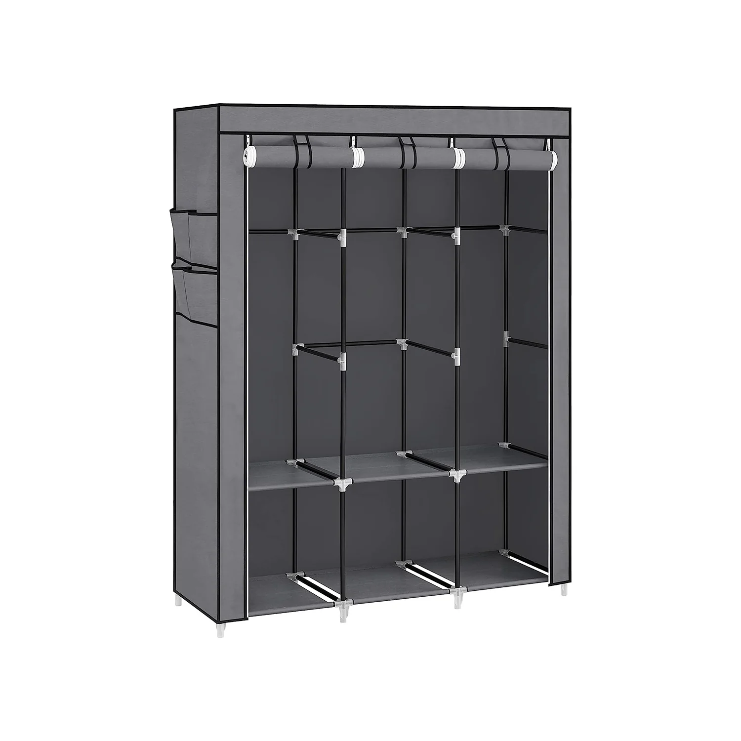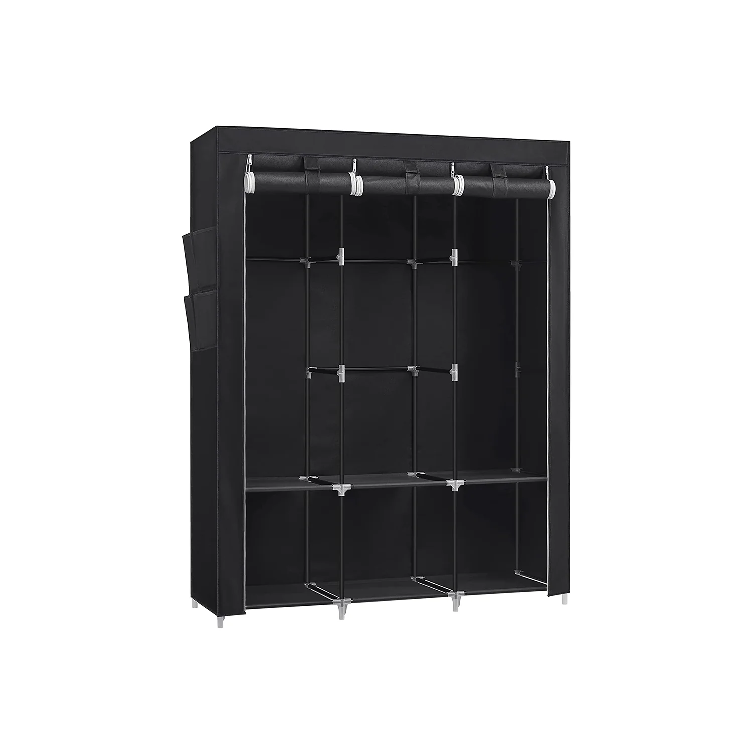SONGMICS Armario de Ropa de Tela, Armario de Pie, 45 x 130 x 167 cm, 3 Secciones para Colgar, con Estantes, 4 Bolsillos Laterales, Gran Capacidad, para Dormitorio, Salón, Negro RYG092B02