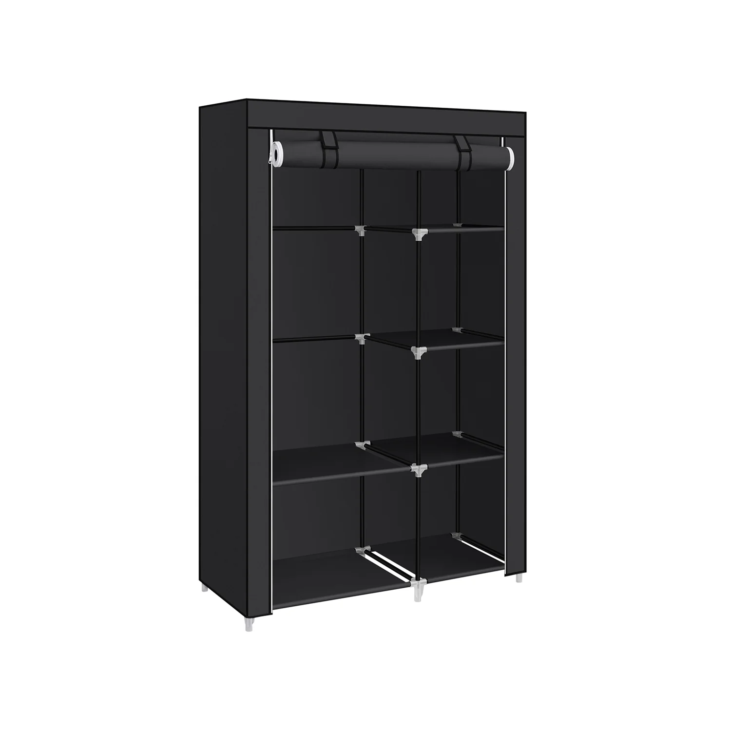 SONGMICS Armario de Tela, Armario de Ropa, con 1 Barra Colgante, 6 Estantes, Tela no Tejida, Marco de Metal, 45 x 105 x 168 cm, para Dormitorio, Pasillo, Negro RYG085B02