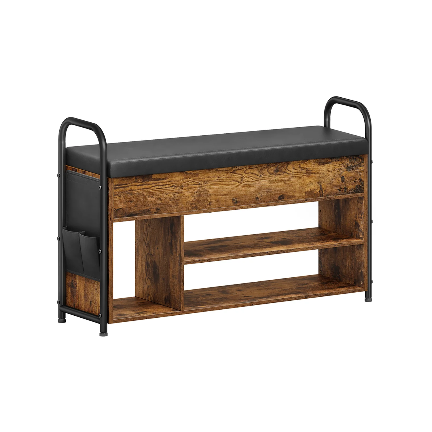 VASAGLE Banco Zapatero, Zapatero, Mueble de Entrada, Almacenamiento Interior Bajo la Tapa, Bolsillos de PU, Cómodas Asas, para Entrada, Salón, Dormitorio, Marrón Rústico y Negro Tinta LSB152K01