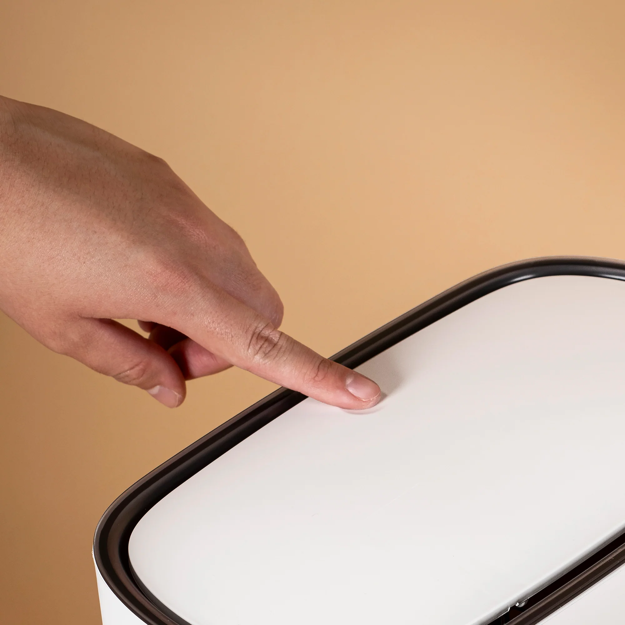 Optimiza y mantén limpio cualquier espacio con el bote de basura blanco tiene capacidad de hasta 10 litros. Con tapa a presión fácil de abrir y cerrar.