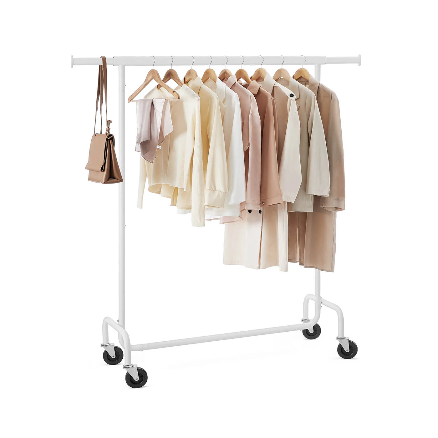 SONGMICS Burro Ropa con Ruedas, Perchero Burro Extensible con Carga Pesada, Capacidad de Carga de 130 kg, Fácil de Montar, Portátil, Negro Mate HSR011B01