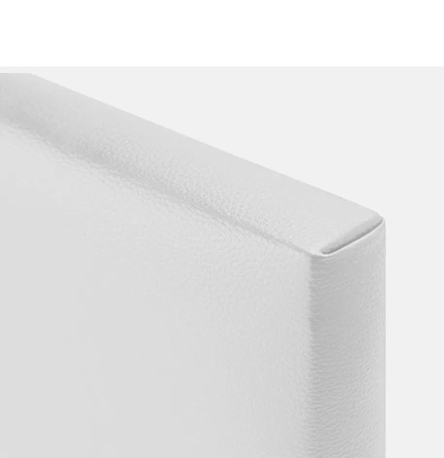 Detalles del cabecero de cama tapizado en polipiel. 5 colores, 5 botones externos en el acolchado frontal y un diseño fino y elegante.