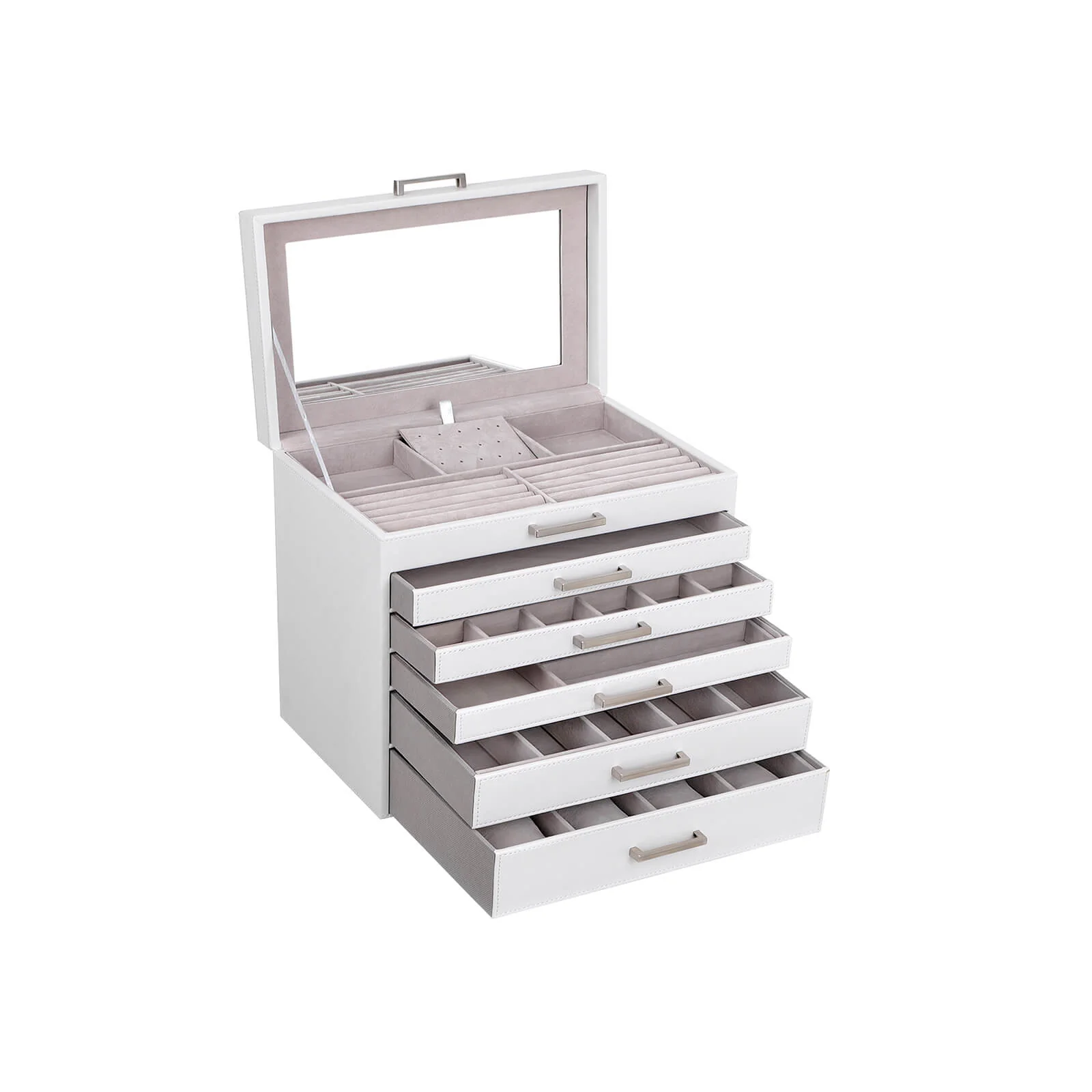 SONGMICS Joyero, Caja de Joyas, Grande con 6 Niveles, con Espejo, para Pendientes, Collares, Pulseras, Relojes, Gafas, Blanco JBC138