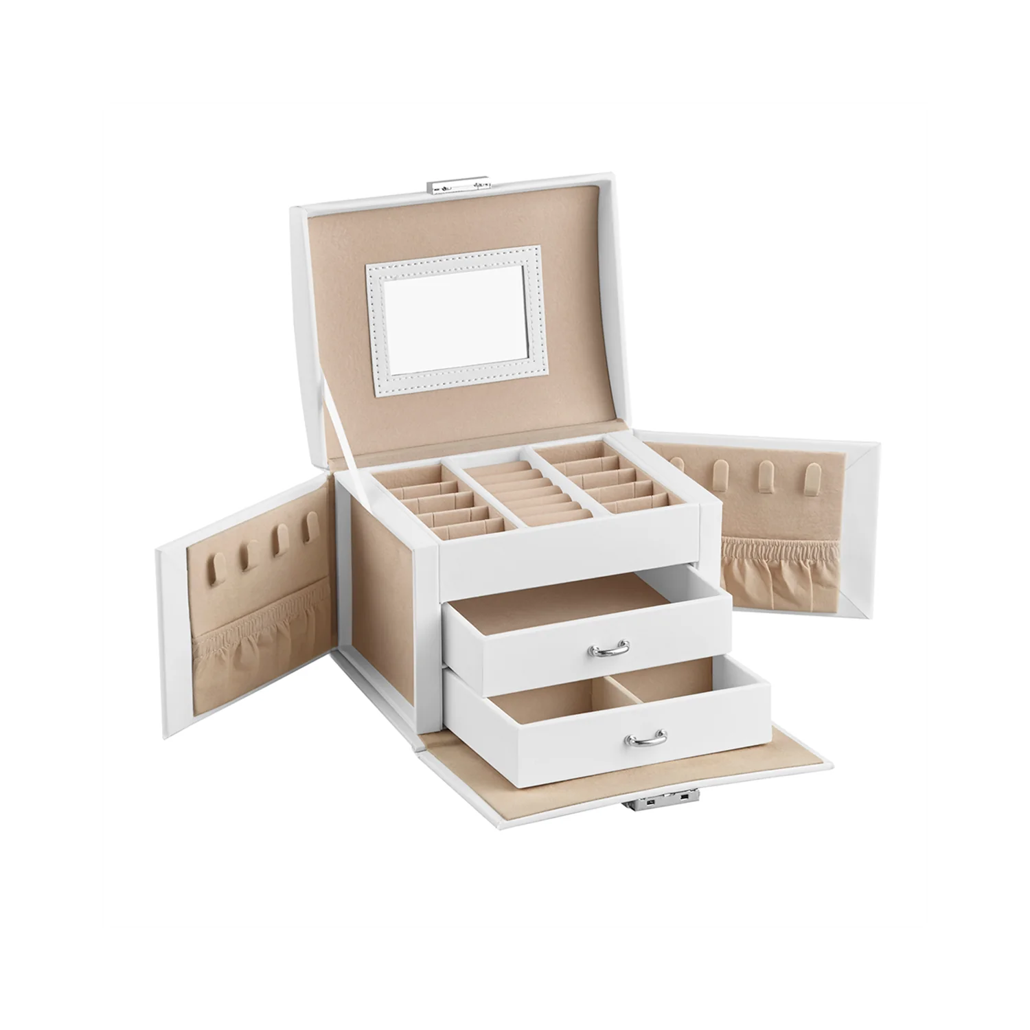 SONGMICS Caja de Joyería, Estuche de Viaje, Portátil, Organizador de Joyas con Cerradura con 2 Cajones, Espejo, 17,5 x 13,5 x 12 cm, Negro JBC154B01