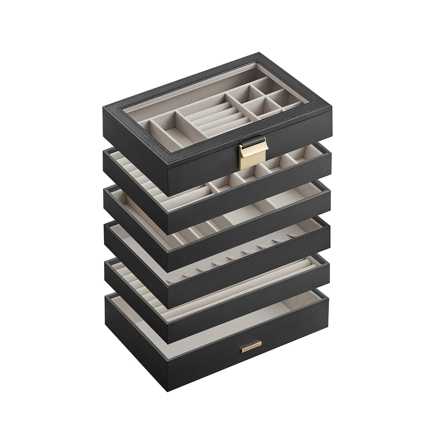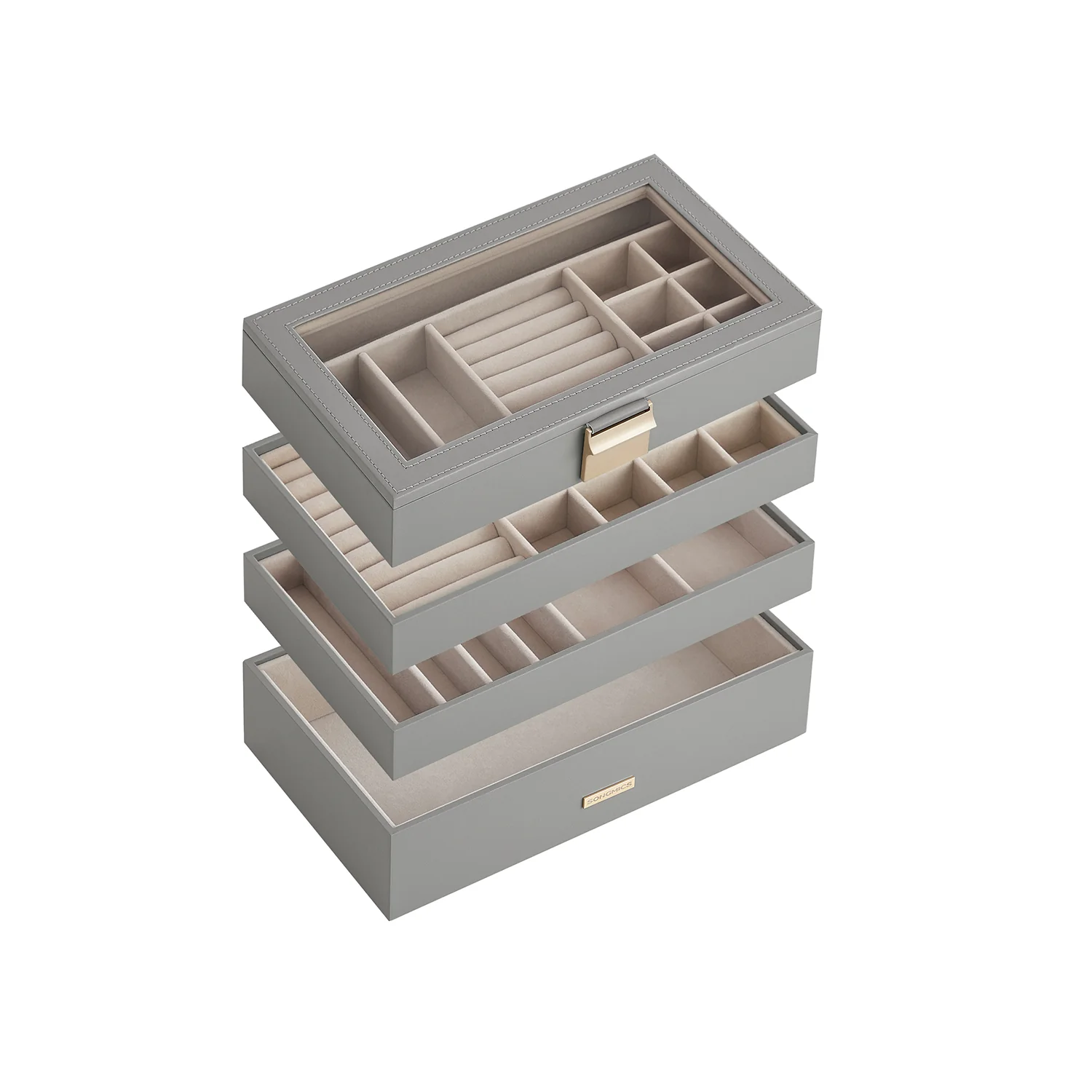 SONGMICS Caja Joyero con 4 Bandejas Apilables, Caja de Joyas Grande, Tapa de Cristal Transparente, 17 x 28 x 18,3 cm, para Cajón de Tocador, Idea de Regalo, Blanco JBC164W01