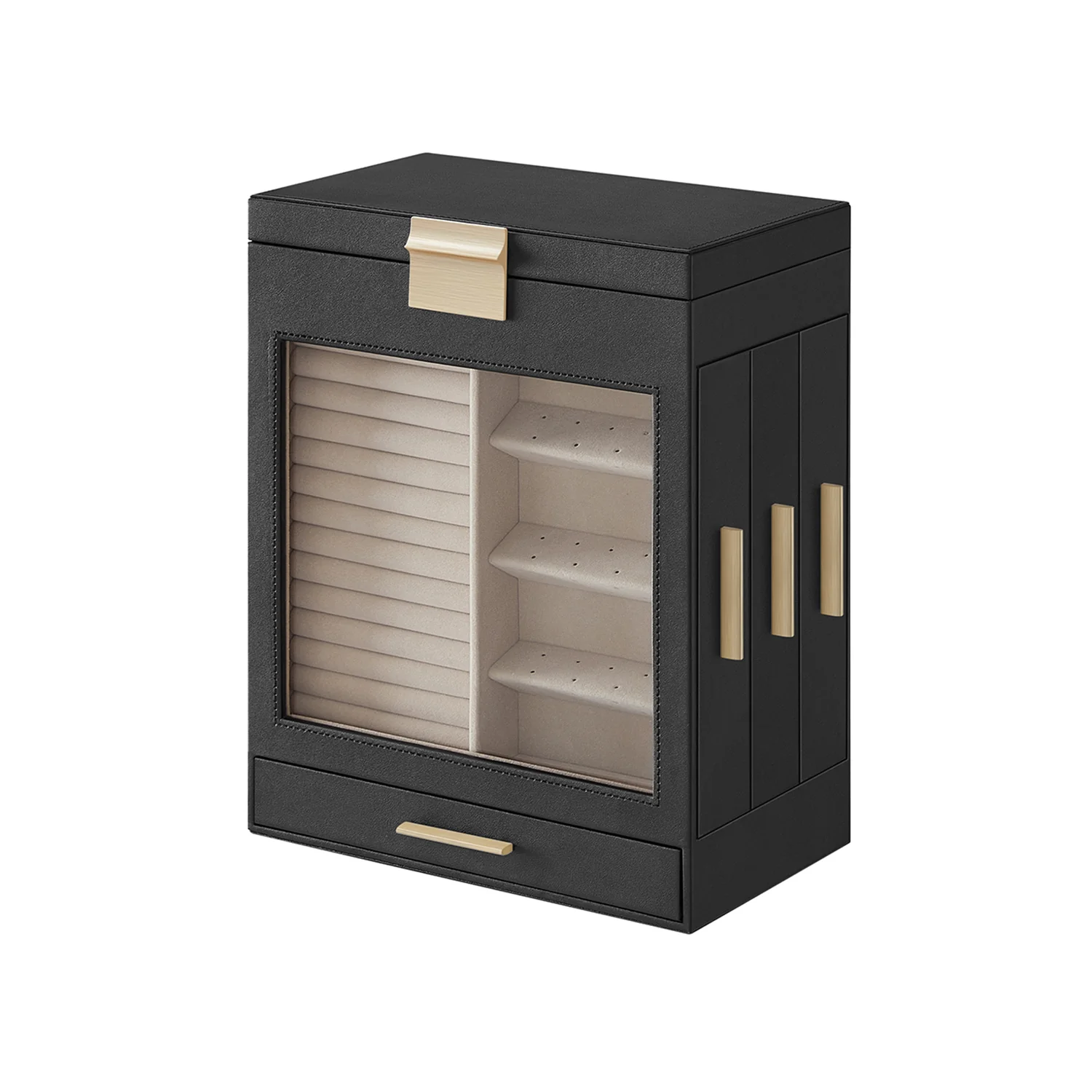 SONGMICS Caja Joyero, Caja para Joyas de 5 Niveles, Ventana de Cristal, Cajones Laterales, Almacenamiento Vertical, Espejo Grande, Estilo Moderno, Blanco Nube JBC162W01