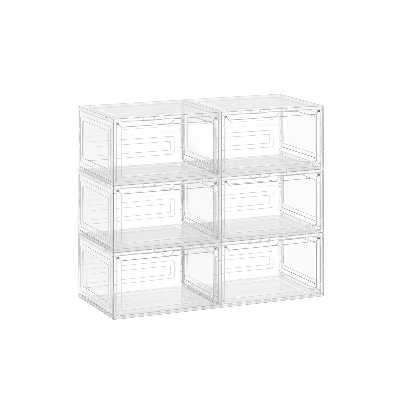 SONGMICS Cajas para Zapatos, Juego de 6, Organizador de Zapatos Transparente, de Plástico, con Puerta, Apilable, 33 x 28,5 x 19,2 cm, para hasta la Talla 46, Blanco Transparente LSP506W01
