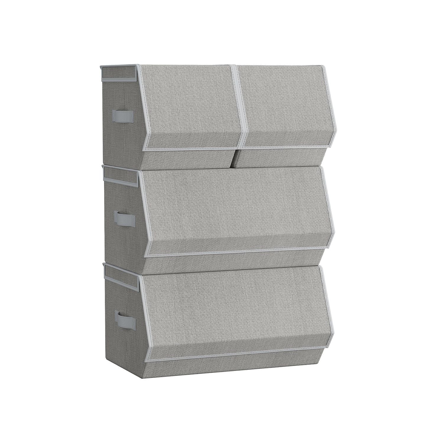 SONGMICS Juego de 4 Cajas de Almacenamiento con Tapas, Apilables, Cubos de Almacenamiento con Cierres Magnéticos, Tela, Marco de Metal, para Ropa, Libros