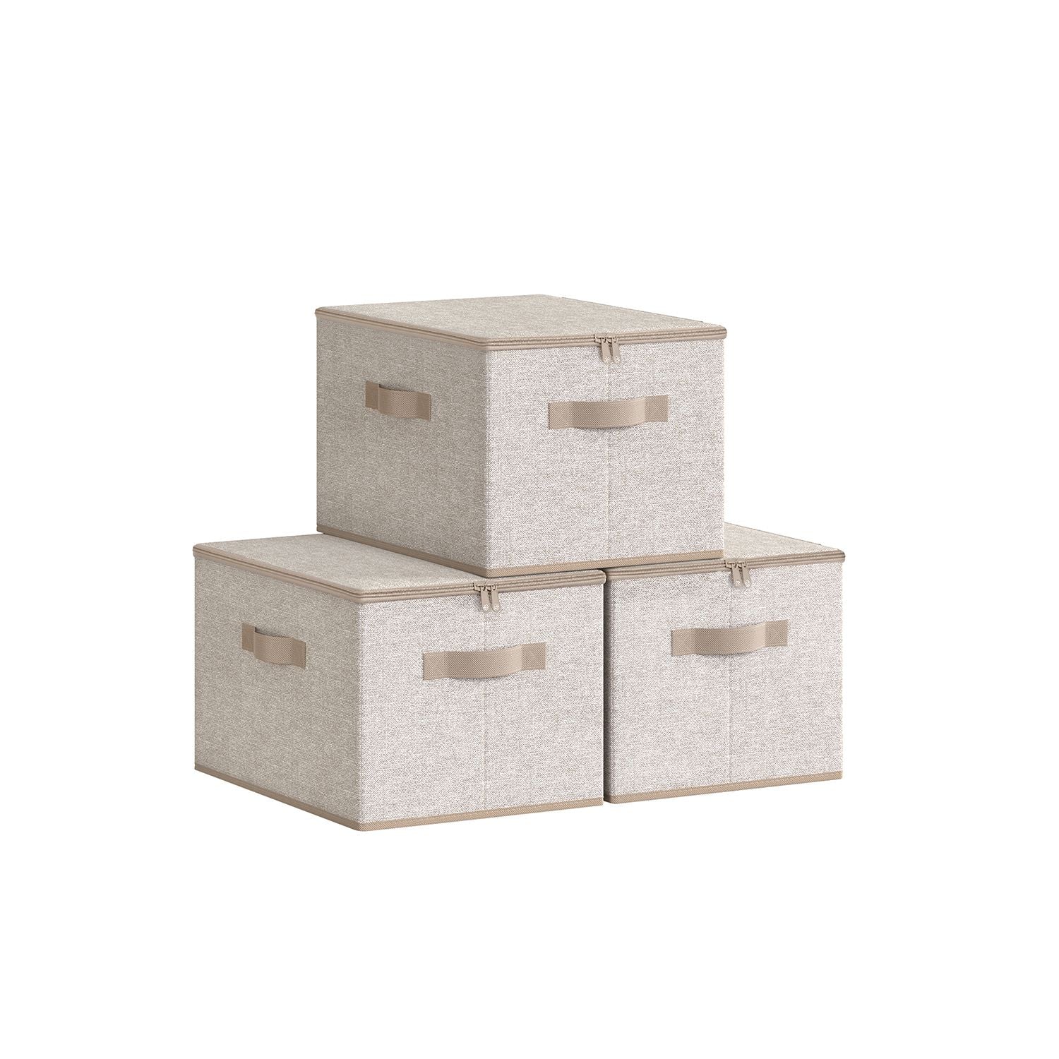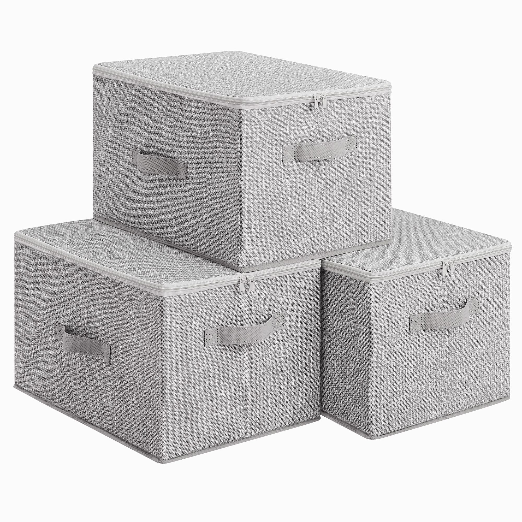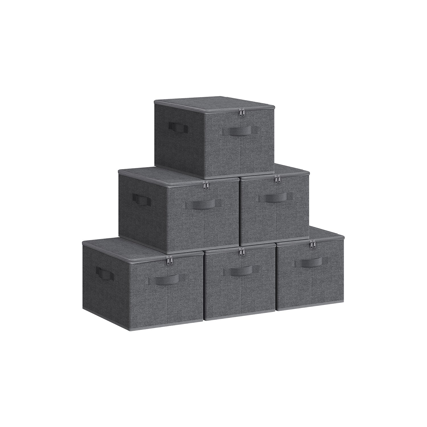 SONGMICS Cajas de Almacenamiento Plegables, con Tapas y Asas, Organizador para Juguetes, Ropa, Gris RYZB03G