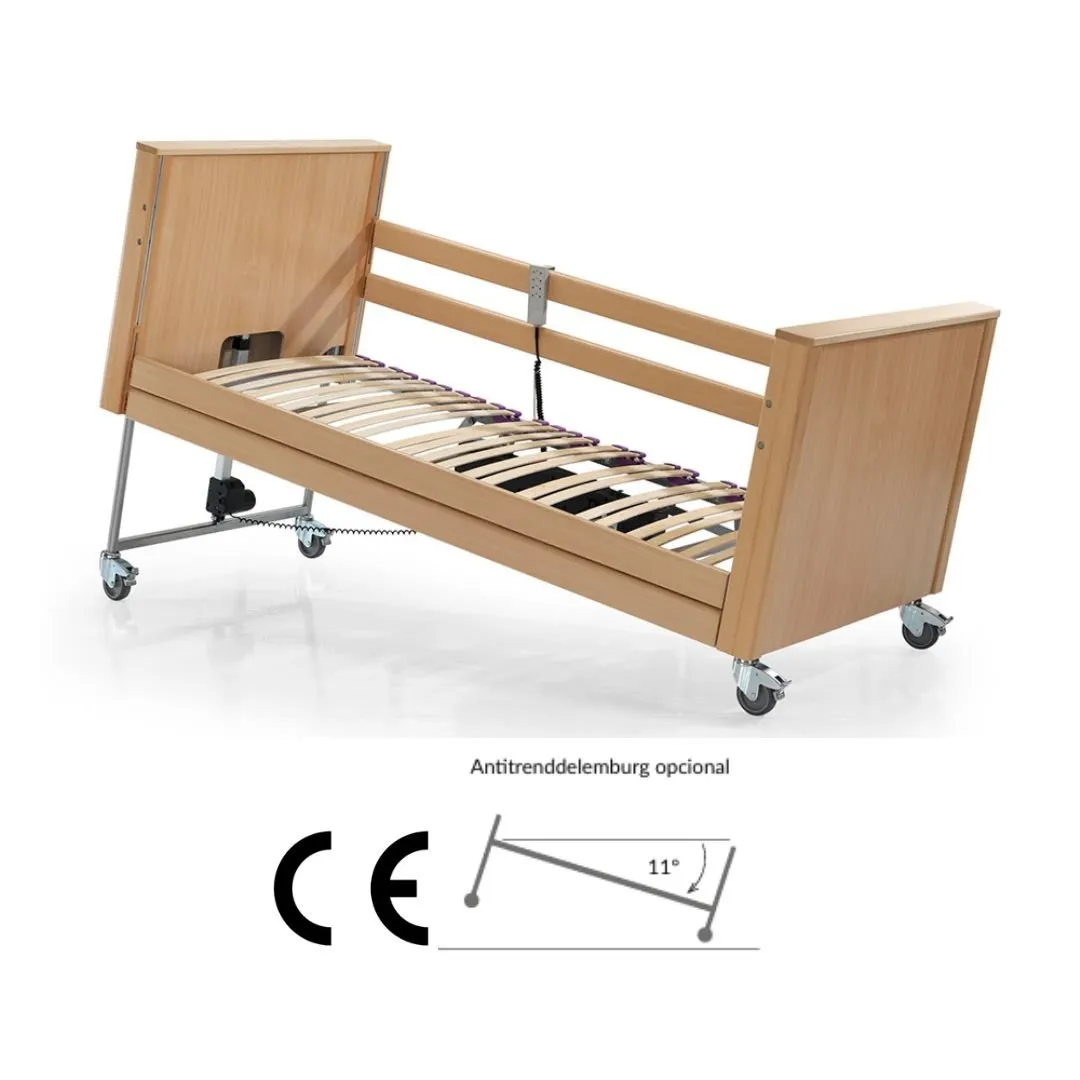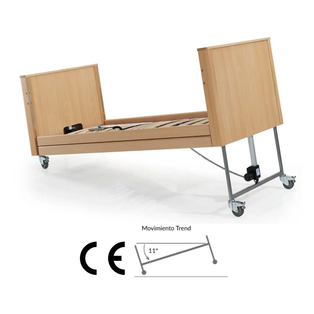 Sistema eléctrico con activación en el mando general. Regula su altura con acceso horizontal entre 22-77 cm e incluye elevaciones Trend y Anti-Trendelemburg hasta 11º. La posición Trend y Anti Trendelemburg son posiciones anatómicas del paciente en cama que aportan grandes beneficios para quienes se recuperan de alguna patología, como respirar mejor o prevenir lesiones. Además, permite al personal de cuidado realizar de manera más cómoda su trabajo; asimismo, permite que los pacientes estén cómodos y no pongan en riesgo su seguridad.