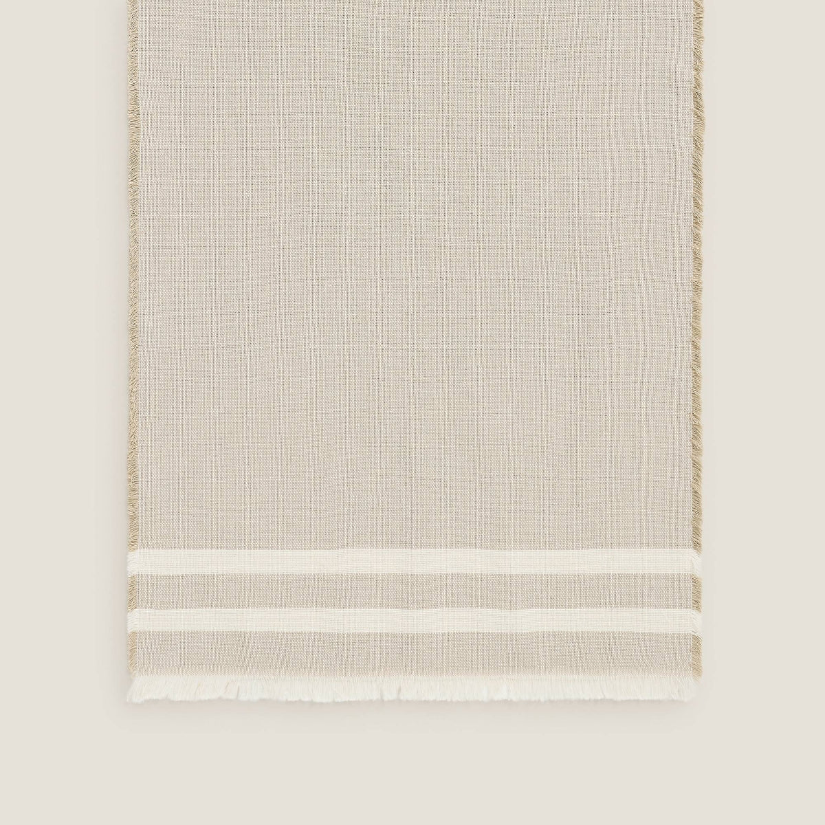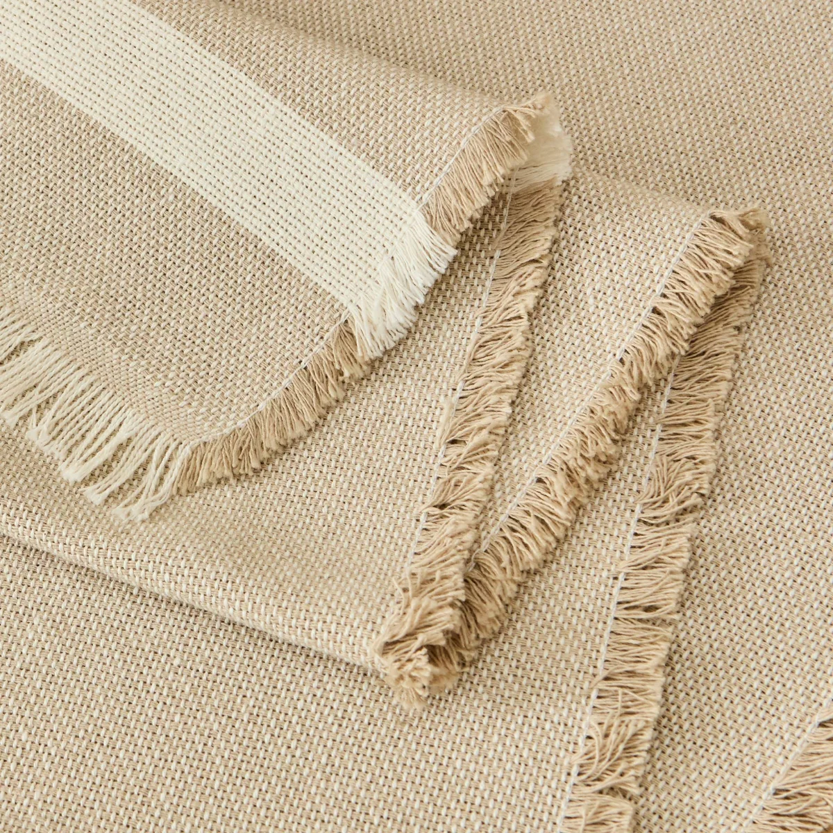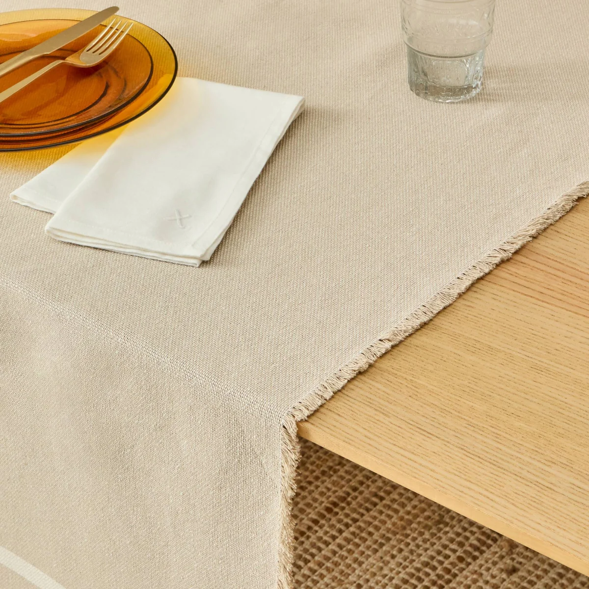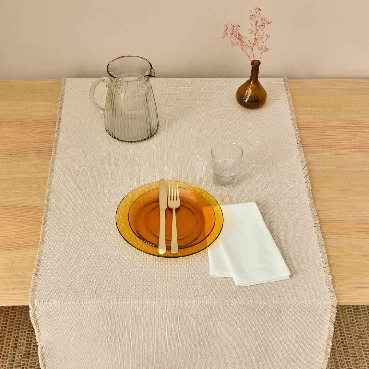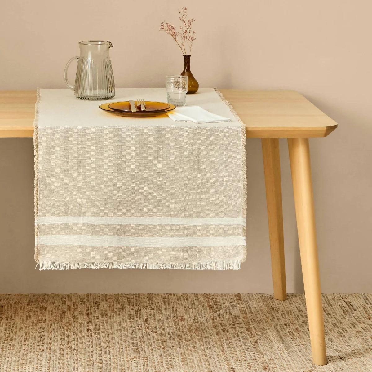 Camino se mesa de algodón y poliéster reciclado con acabado antimanchas y flecos.