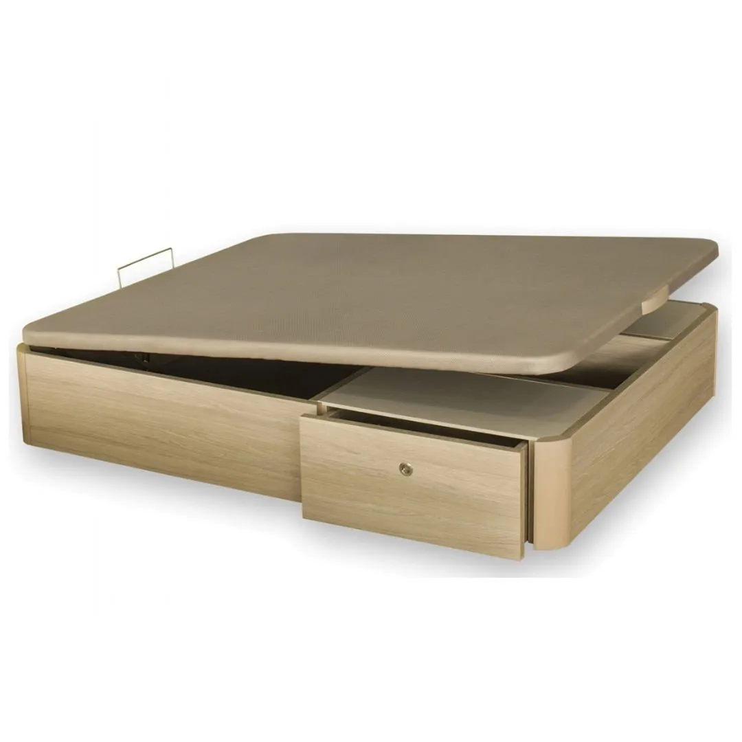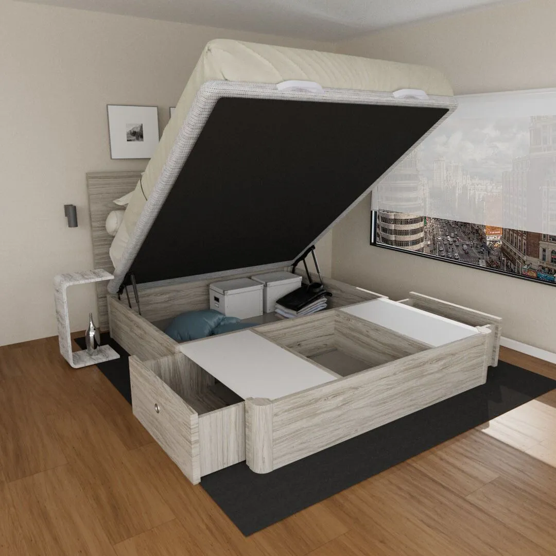 Para los fanáticos del orden. Para los que colocan cada cosa en su lugar. Para quiénes necesitan ganar un espacio extra a su dormitorio. Para los amantes de la estética. Para los que se preocupan por la usabilidad y la durabilidad. Para descansar cada noche. El Canapé Abatible con Cajones Laterales es para todo esto y mucho más. Un canapé de madera abatible con cajones laterales que aprovecha el espacio, amplia la zona de almacenamiento en tu habitación y genera dos espacios independientes bajo el colchón para mantener todo ordenado y con los objetos de usos cotidiano a tu alcance sin necesidad de levantar la tapa.
