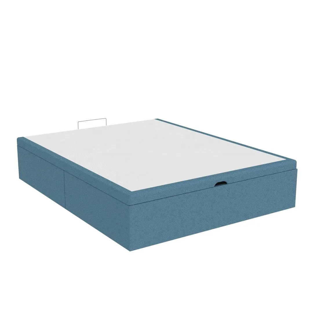 Su tejido exterior se tapiza con un tejido 3D Air fresh. Es antideslizante, altamente transpirable y resistente. Consigue la máxima transpiración para tu colchón y evita que se mueva mientras duermes. La tapa lleva los bordes tapizados a juego con la tonalidad del cajón, mientras que, su interior, es en color blanco.