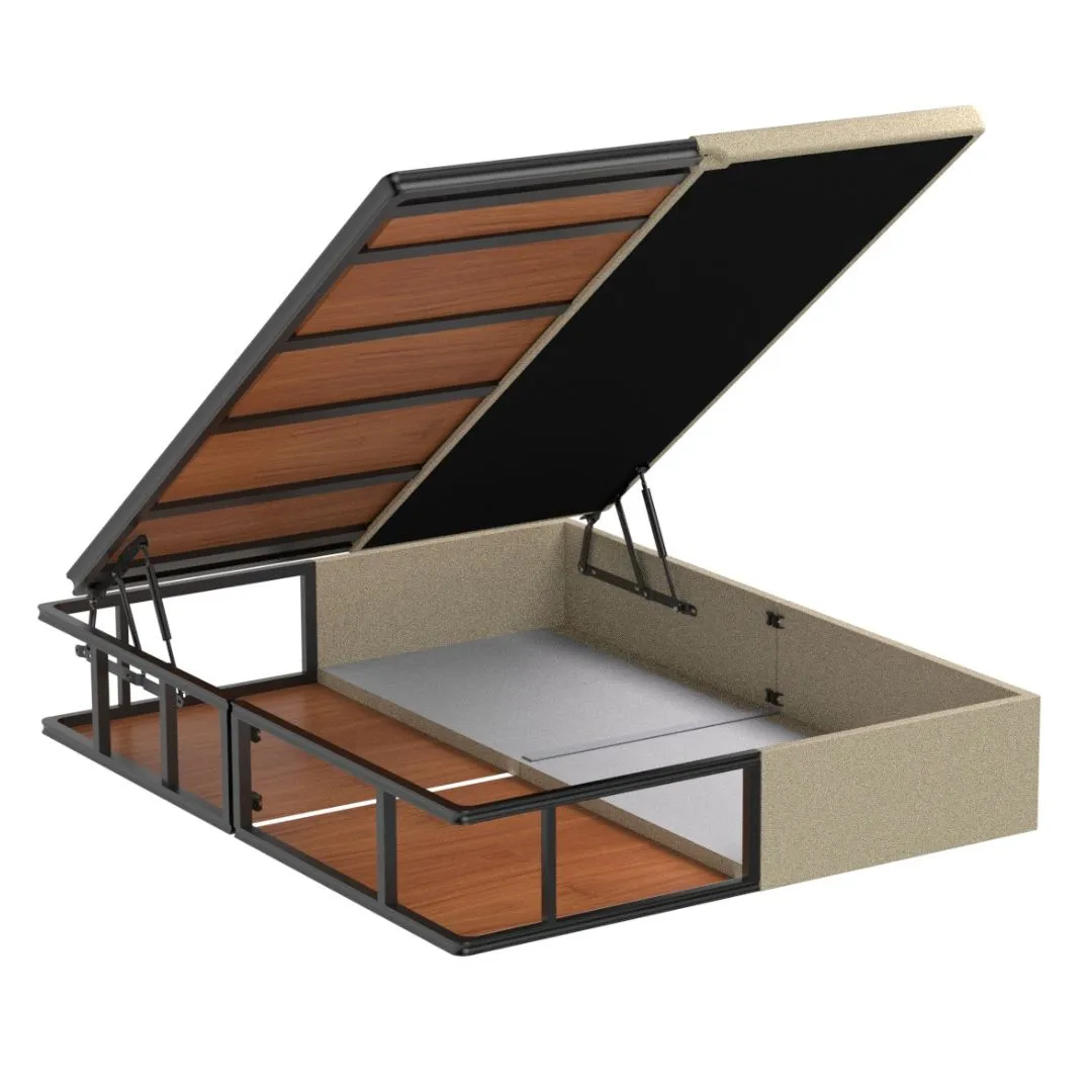 Su juego de compases con bombines hidráulicos está preparado para soportar y levantar la tapa del canapé. Con muchos NW de presión, permiten que la base se levante sin necesidad de hacer ningún tipo de esfuerzo.