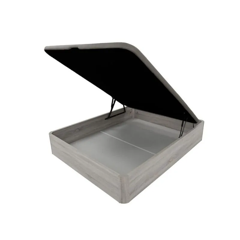 Tras la resistente base tapizada 3D antideslizante y transpirable, este Canapé de Madera se caracteriza además por ser un Canapé Abatible de Gran Capacidad Interior. Tiene una altura total de 38cm, mientras que, su resistente y fuerte cajón formado por un armazón de madera de 30mm, mide 35cm y cuenta con 27,5cm de capacidad útil de carga. Soluciona problemas de espacio y mantiene ordenada las habitaciones con los objetos a tu alcance, añadiendo seguridad evita deformaciones que permite aglutinar diferentes elementos con el tablero aglomerado de madera reforzada de 5mm que conforma el fondo del canapé de madera abatible.