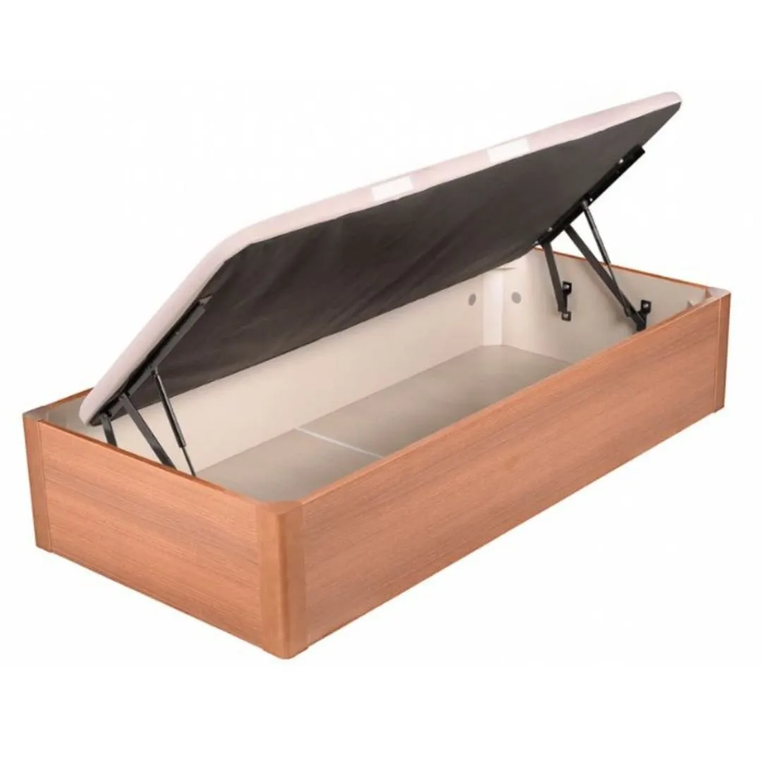 De apertura y cierre lateral, cuenta con un sistema de elevación hidráulica compuesta por una pareja de bombines hidráulicos que realizan la fuerza necesaria para levantar la tapa sin realizar esfuerzos y la mantiene abierta para que podamos acceder al interior. Este canapé de madera también cuenta con las opciones extras de bisagra de doble pistón o elevación motorizada para facilitar, aún más, su apertura y cierre.