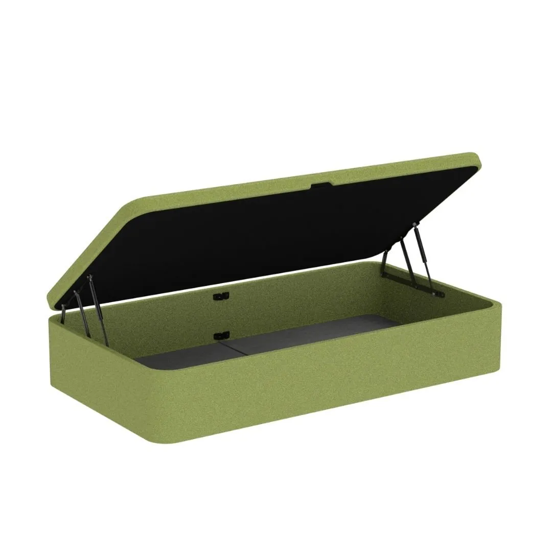Su tejido exterior se tapiza con un tejido 3D Air fresh. Es antideslizante, altamente transpirable y resistente. Consigue la máxima transpiración para tu colchón y evita que se mueva mientras duermes. La tapa lleva los bordes tapizados a juego con la tonalidad del cajón, mientras que, su interior, es en color blanco
