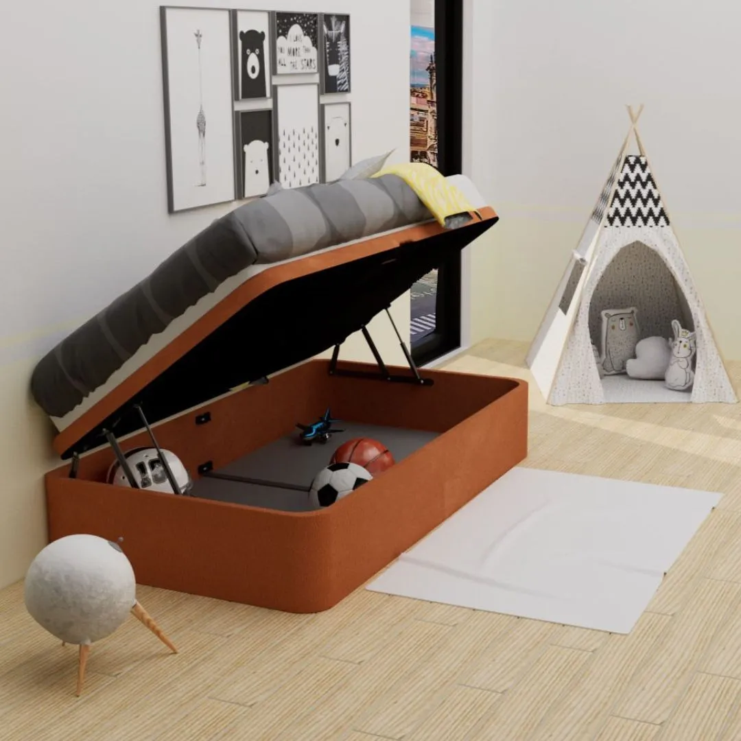 Lo más destacado de este canapé de apertura lateral es su personalización. Ofrece diversas opciones, desde el color del tapizado hasta el sistema de apoyo. Puedes elegir entre una base que se ajuste al suelo con una goma perimetral para evitar la entrada de suciedad, o agregar patas de 5cm o 10cm según tus preferencias. Además, si necesitas mover el canapé dentro de la habitación para facilitar la limpieza, puedes optar por ruedas auto frenables o un sistema de desplazamiento activado por una palanca interna.