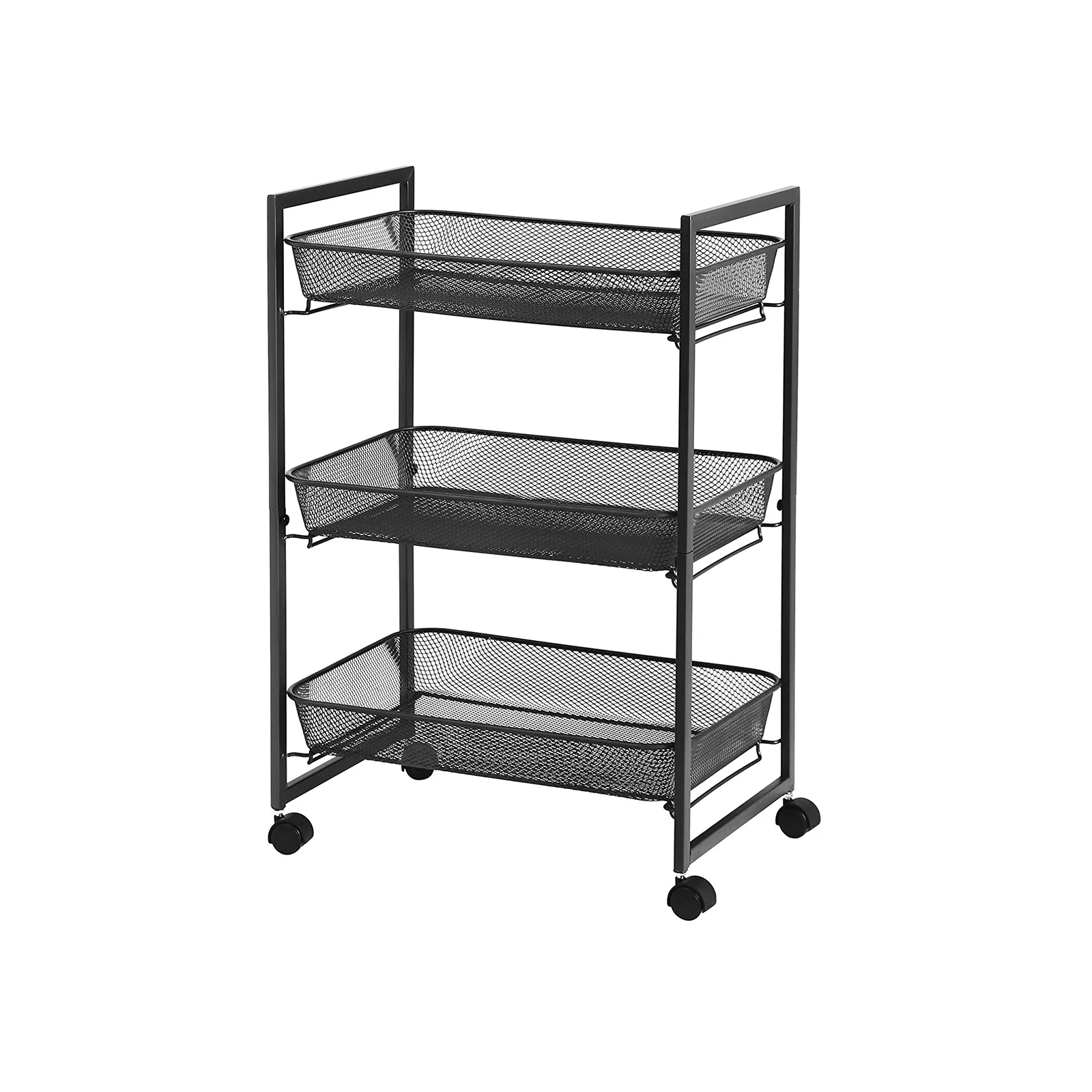 SONGMICS Carro de 3 Niveles, Carro de Cocina y Baño con Cestas de Alambre, Ahorro de Espacio, Montaje Fácil, para Oficina, Sala de Estar, Negro BSC061B01