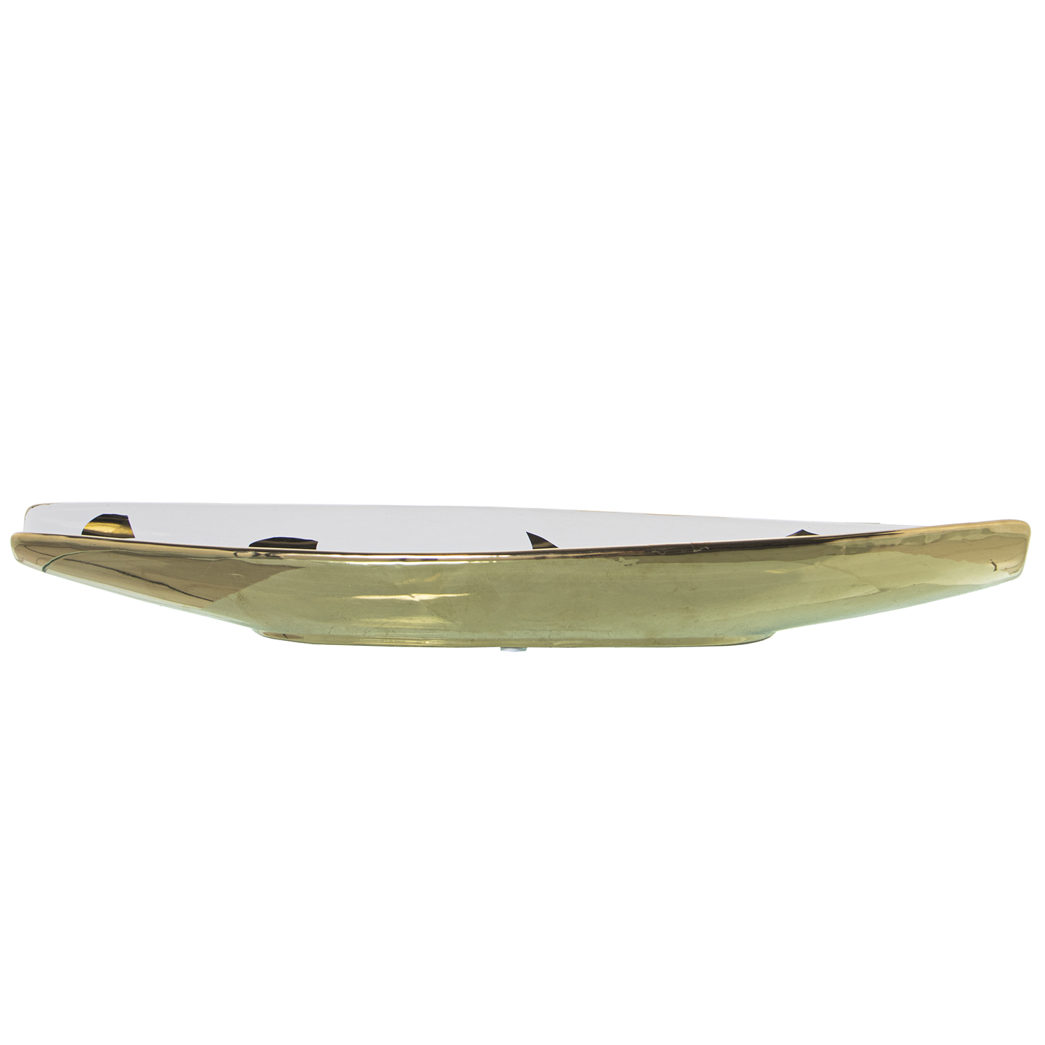 Centro de cerámica blanco con detalles dorados.
