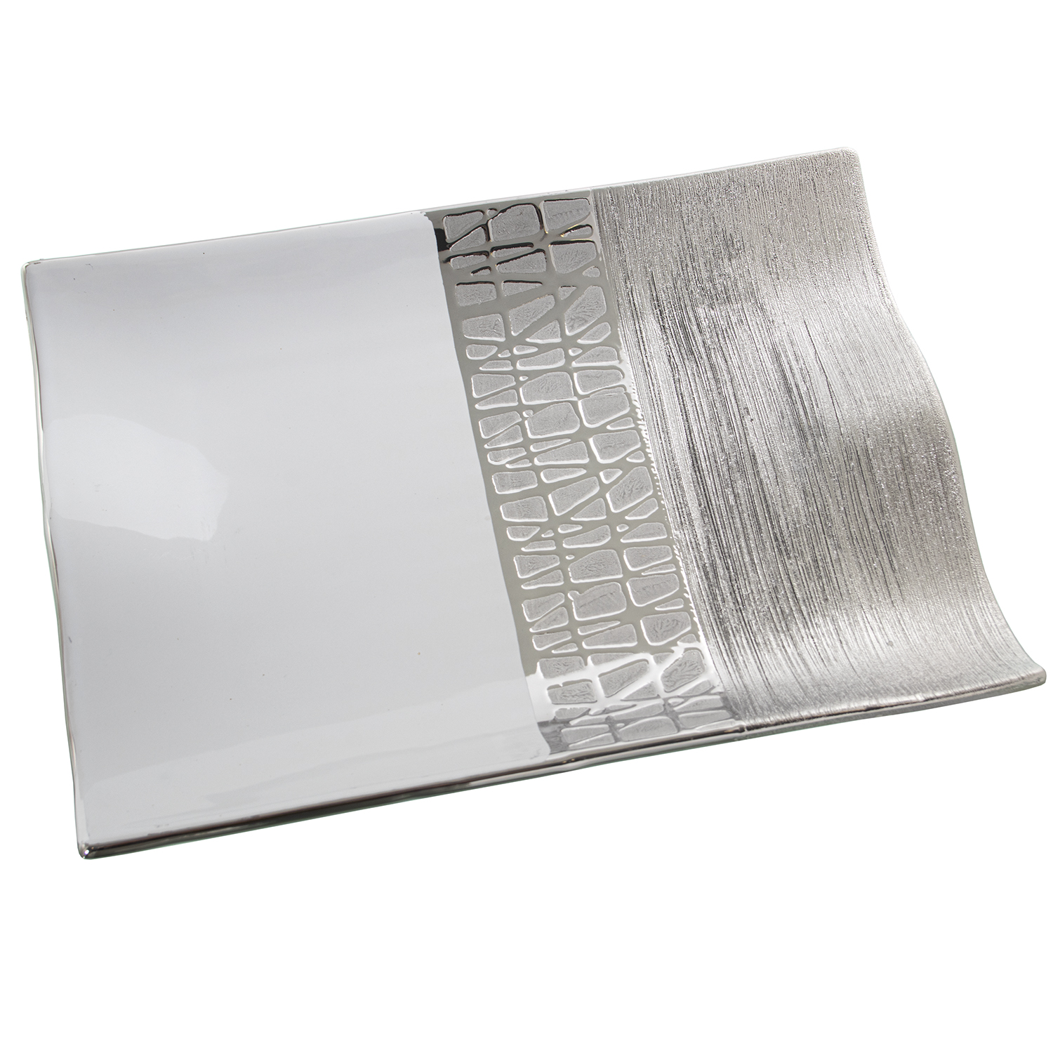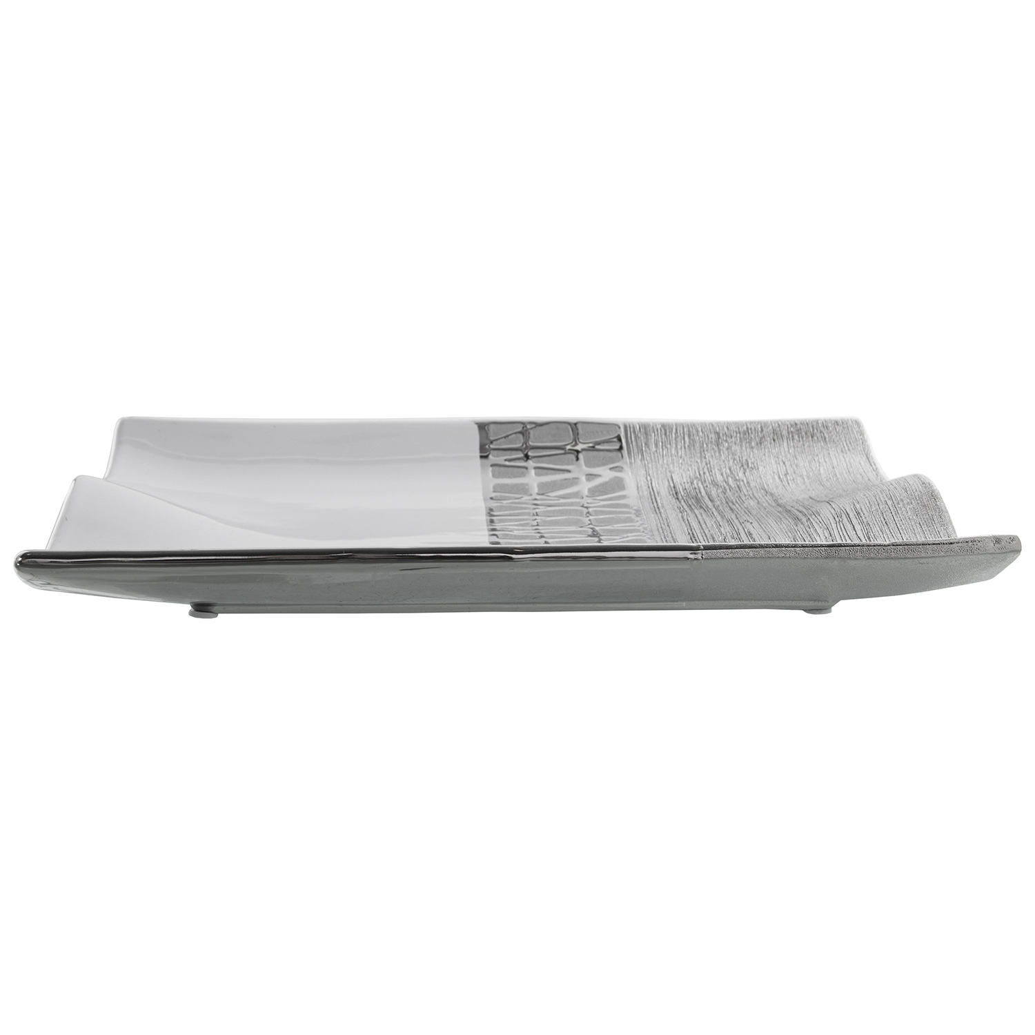 Centro de cerámica blanco con detalles plateados