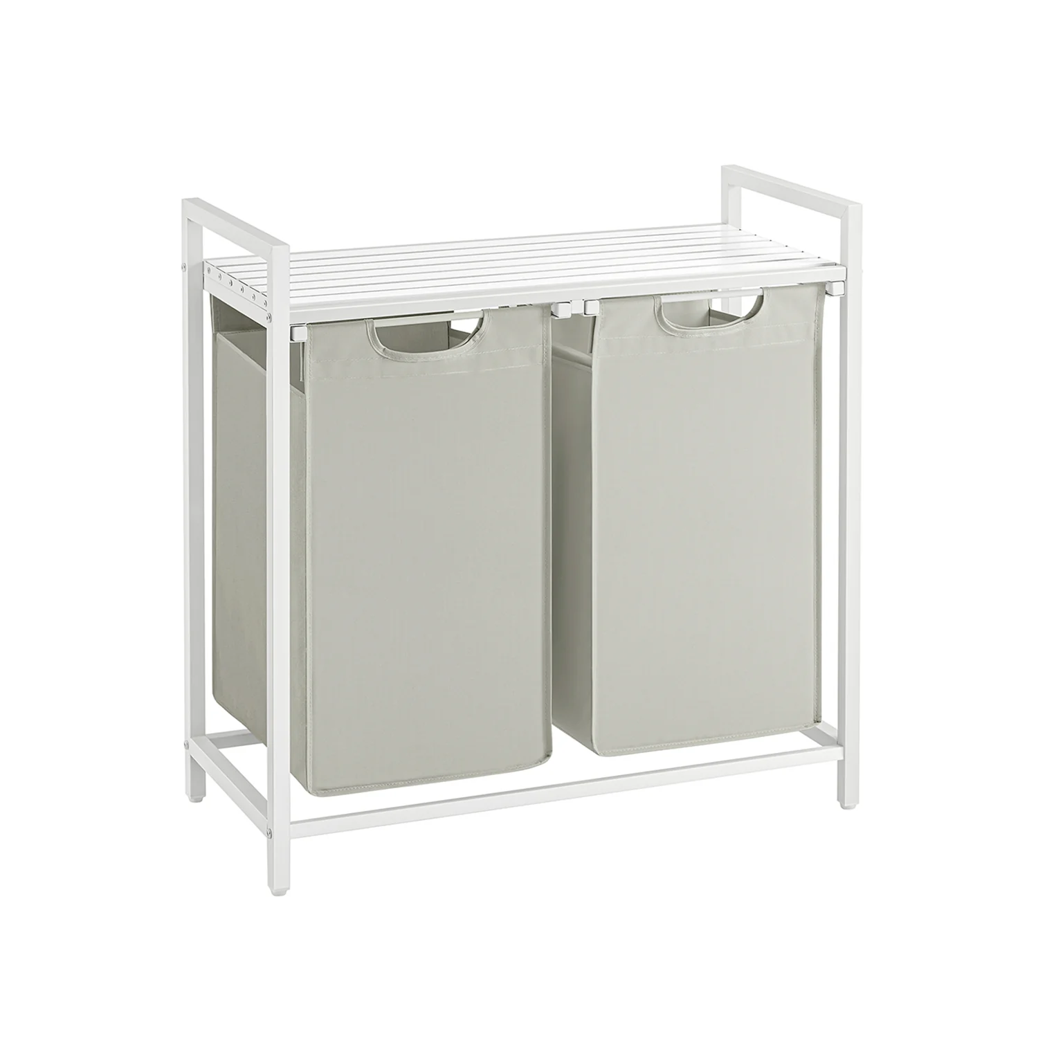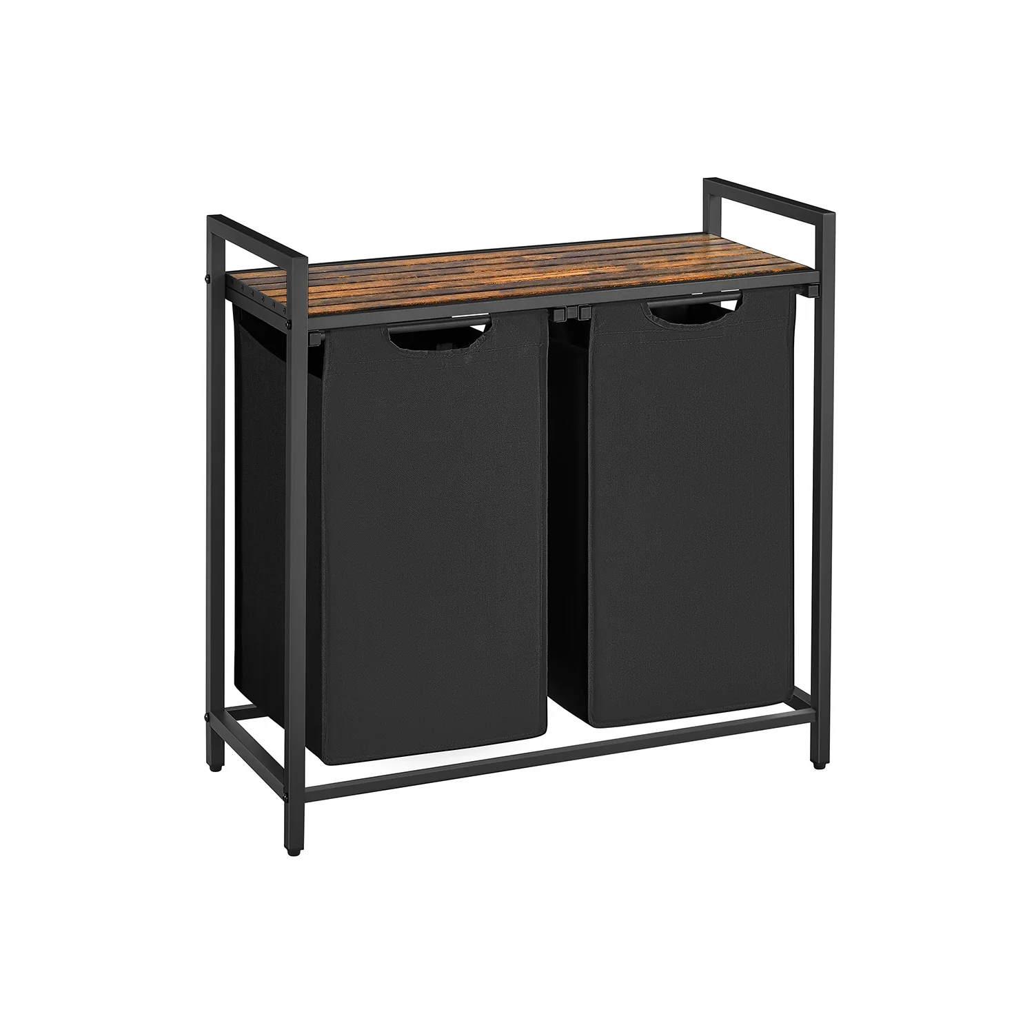 VASAGLE Cesto para Ropa Sucia, Cesta Colada, 2 Bolsas Colada de Tela Oxford Extraíble y Desmontable, Estante, Marco Metálico, 2 x 46 L, 73 x 33 x 72 cm, Marrón Rústico y Gris BLH201G01