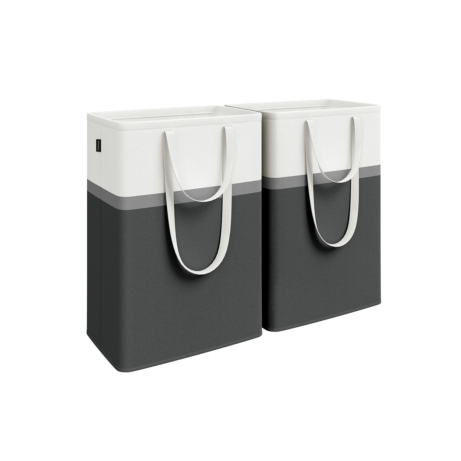 SONGMICS Juego de 2 Cestas para Colada, Cestas Plegables para Ropa Sucia 75 L, Bolsa con Asas Cortas y Largas, Fácil de Transportar y Limpiar, para Dormitorio, Baño, Negro Tinta LCB208B01