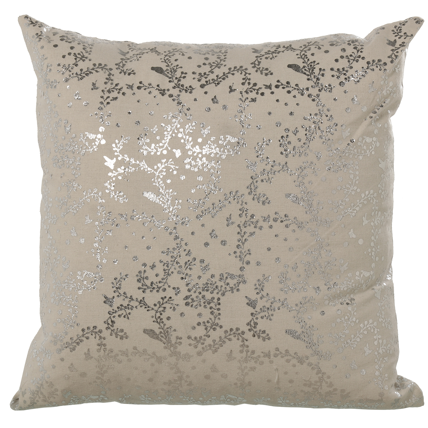 Cojín 45×45 cm poliester crema detalles plata