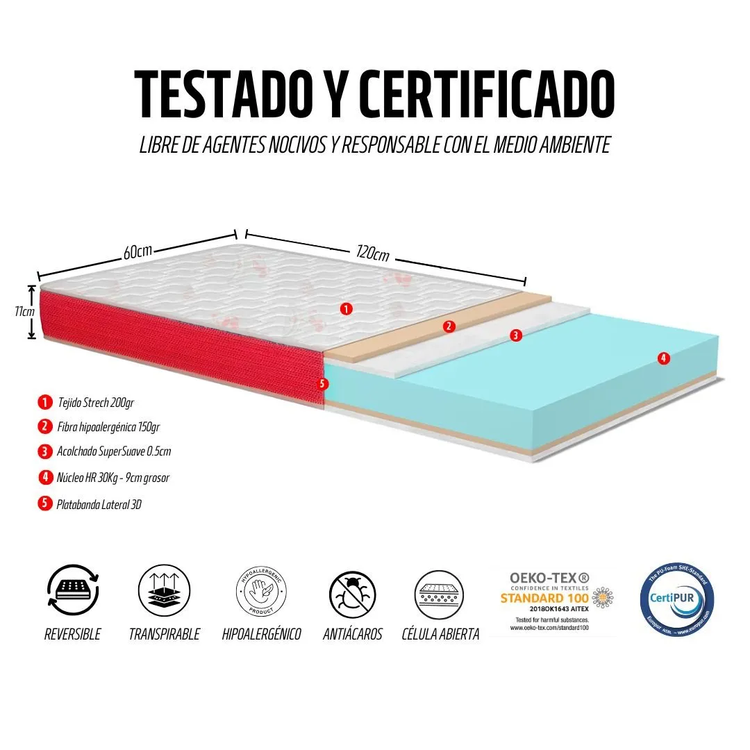 | Núcleo | 9cm de HR 23Kg a célula abierta. Transpirable |