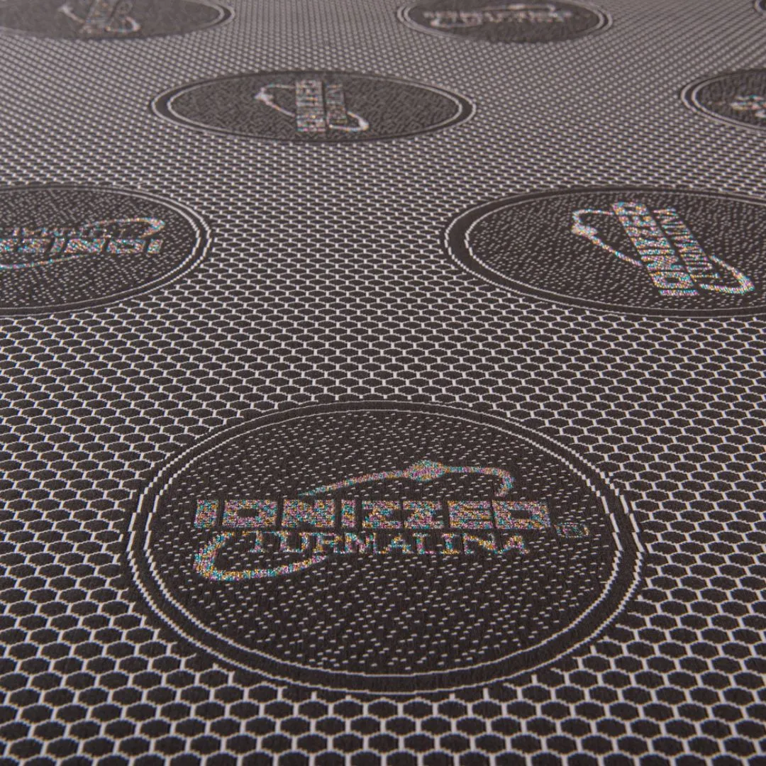 En primer lugar, nos encontramos con un tejido compuesto por fibras naturales y efecto Cool Touch, capacitador de un descanso agradable a través de su sensitivo y suave tacto. Un tejido natural cuyo diseño sobresale por encima del resto mediante el grabado del símbolo griego del deporte. Mientras que, en segundo lugar, observamos un tejido con efecto termorregulador cuya función principal sustenta el mantenimiento ideal de la correcta temperatura corporal.