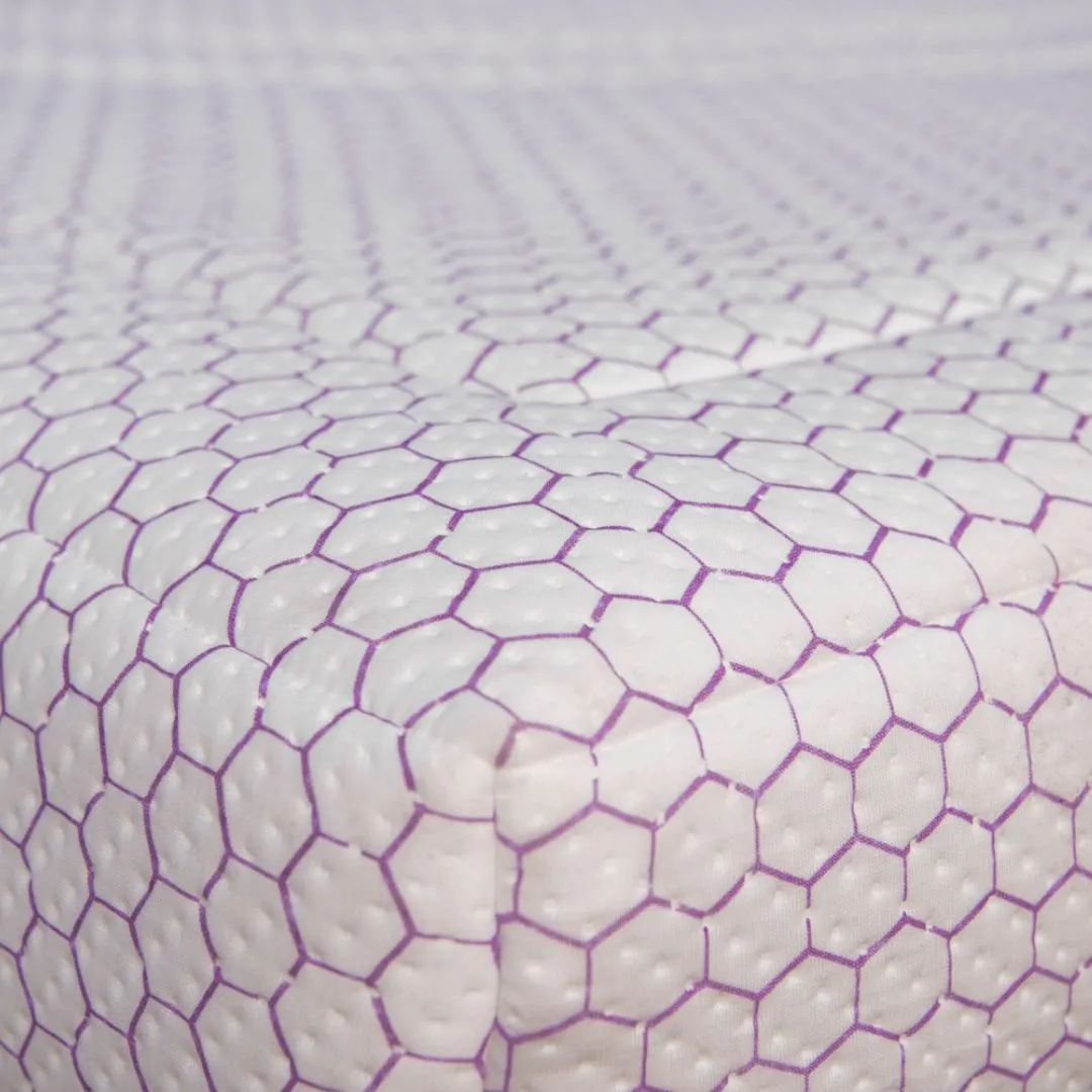 Natural Sport incorpora una capa de Viscoelástica a poro abierto de alta transpirabilidad Neropur con 6.5 cm con una densidad de 50kg/m3 y 0.90Kpa. Está perfilada con 5 zonas diferenciadas de descanso para conseguir el mejor reparto de nuestro peso corporal en el colchón. Además, su perfilado crea canales de ventilación para conseguir la máxima transpirabilidad posible. Ofrece un material compuesto con un aceite de Linalool, que se extrae de la planta de Azahar cuyas propiedades son regeneradoras de la piel, ansiolíticas, antioxidantes, antisépticas, antifúngicas y antivirales. Este colchón para deportistas desprende un olor natural con un toque mentolado y floral.