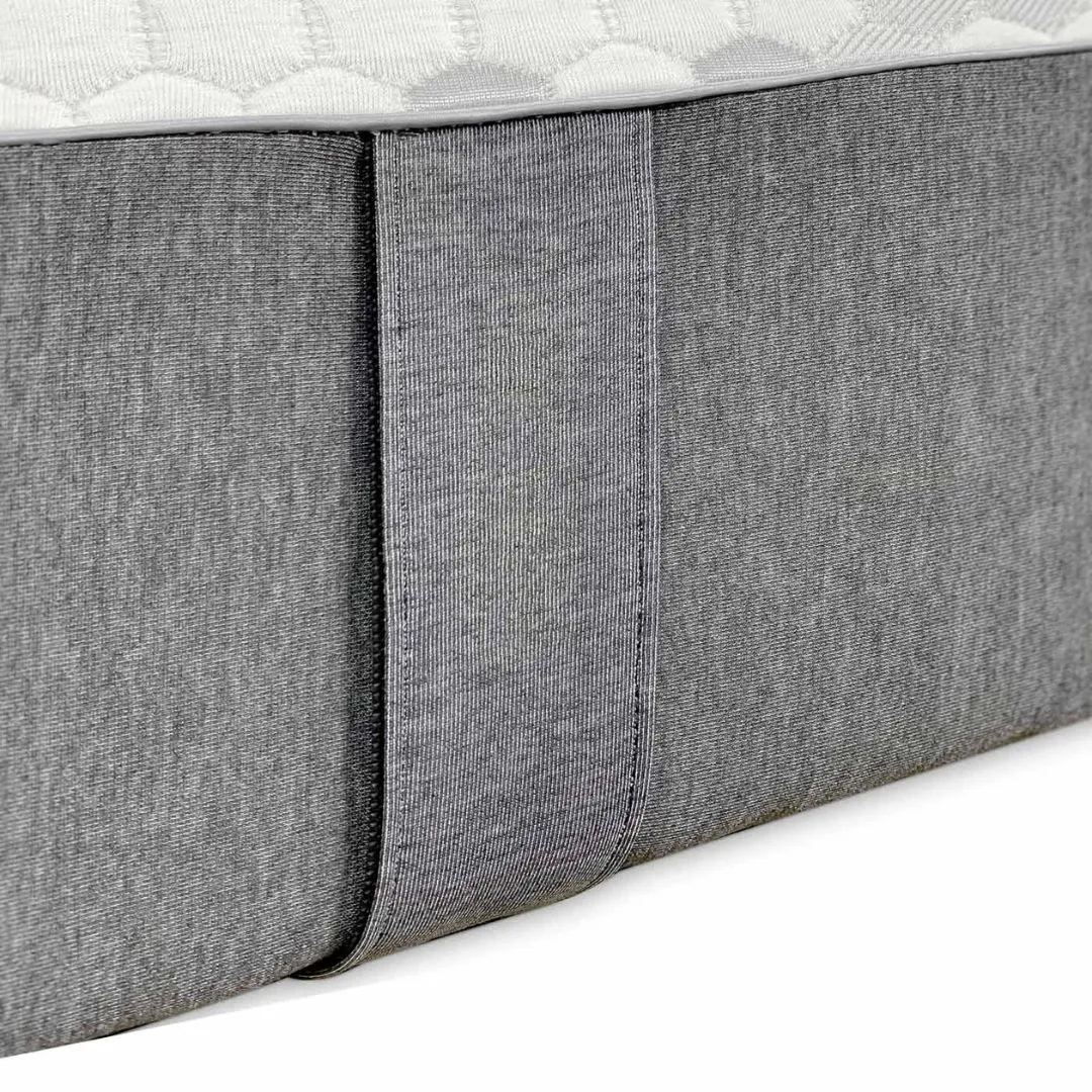 La platabanda lateral del colchón es la encargada de generar una alta estética a la composición y de fomentar la circulación del aire. Está formada por un tejido Vigore y ribete blome con 4 asas verticales. Incluye asas de gran sujeción en su una cremallera desenfundable que facilita la higienización del colchón.