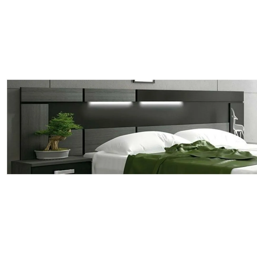 Magnífico cabecero para camas de hasta 200cm. Gracias a su anchura de 259,8cm es ideal para camas de matrimonio. Está formado por tablero melaminado contrachapado de buena calidad y disponible en color ceniza-negro.