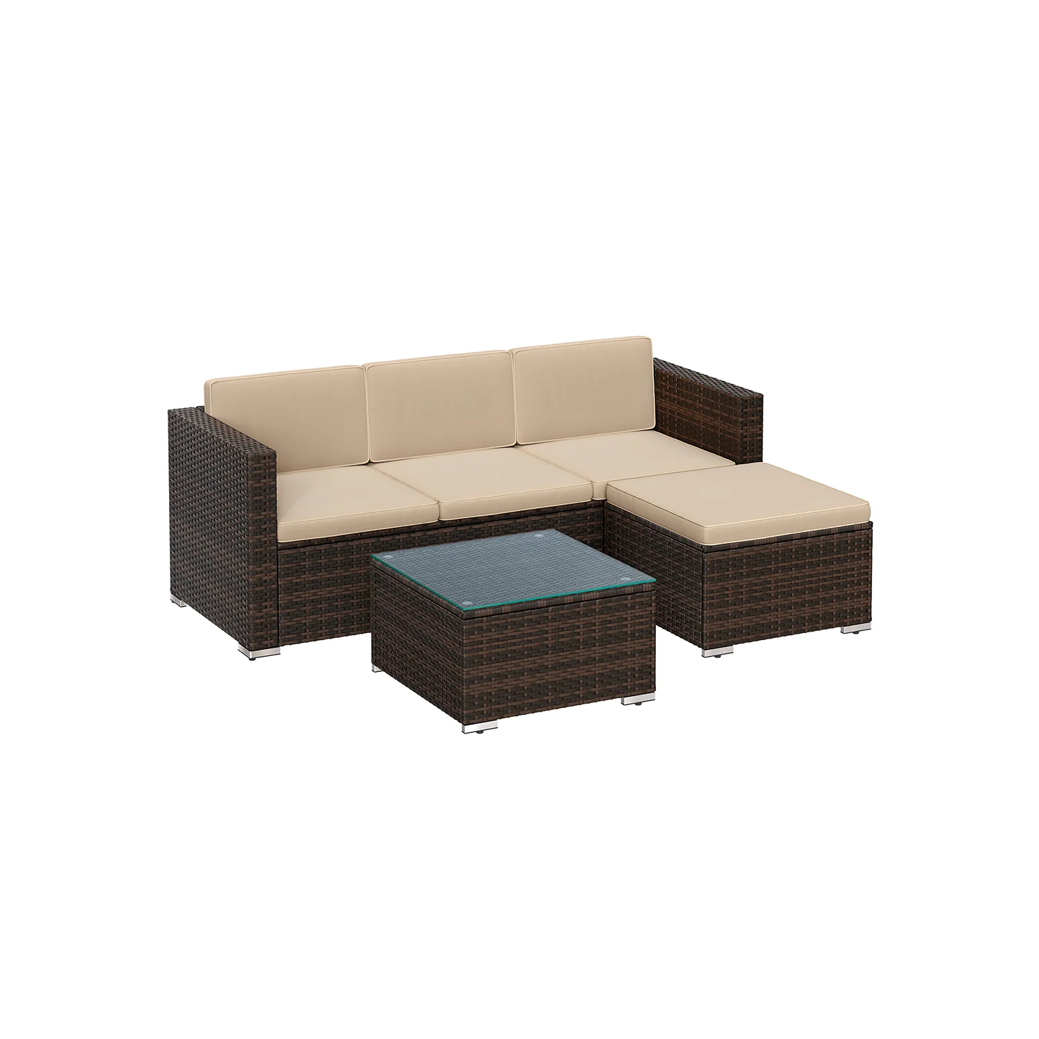 SONGMICS Conjunto de 5 Muebles de jardín, Mueble de Exterior de ratán Tejido a Mano, Sofá de Exterior, Mesa de Centro con Tablero de Cristal, con Cojines, Marrón y Beige GGF005K01