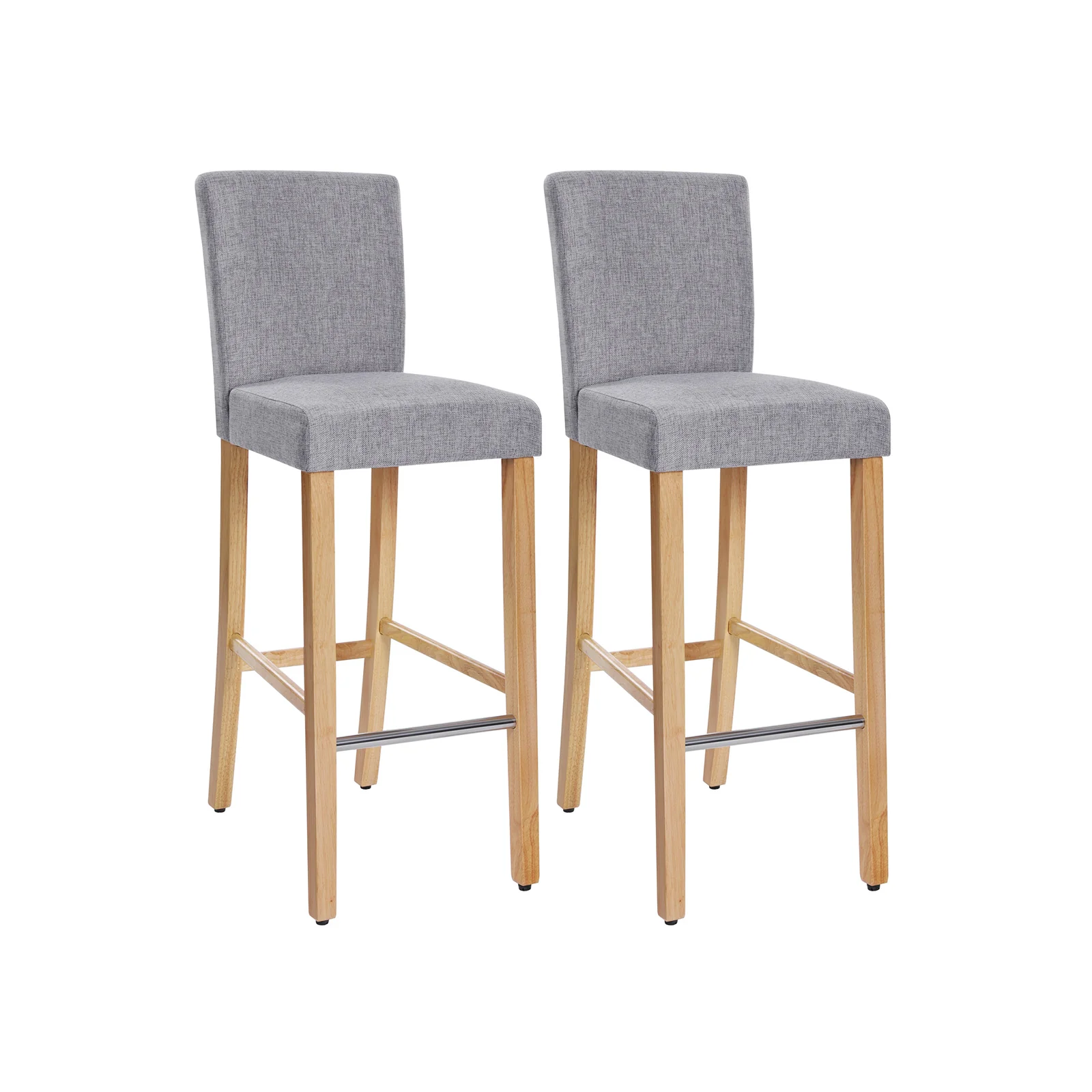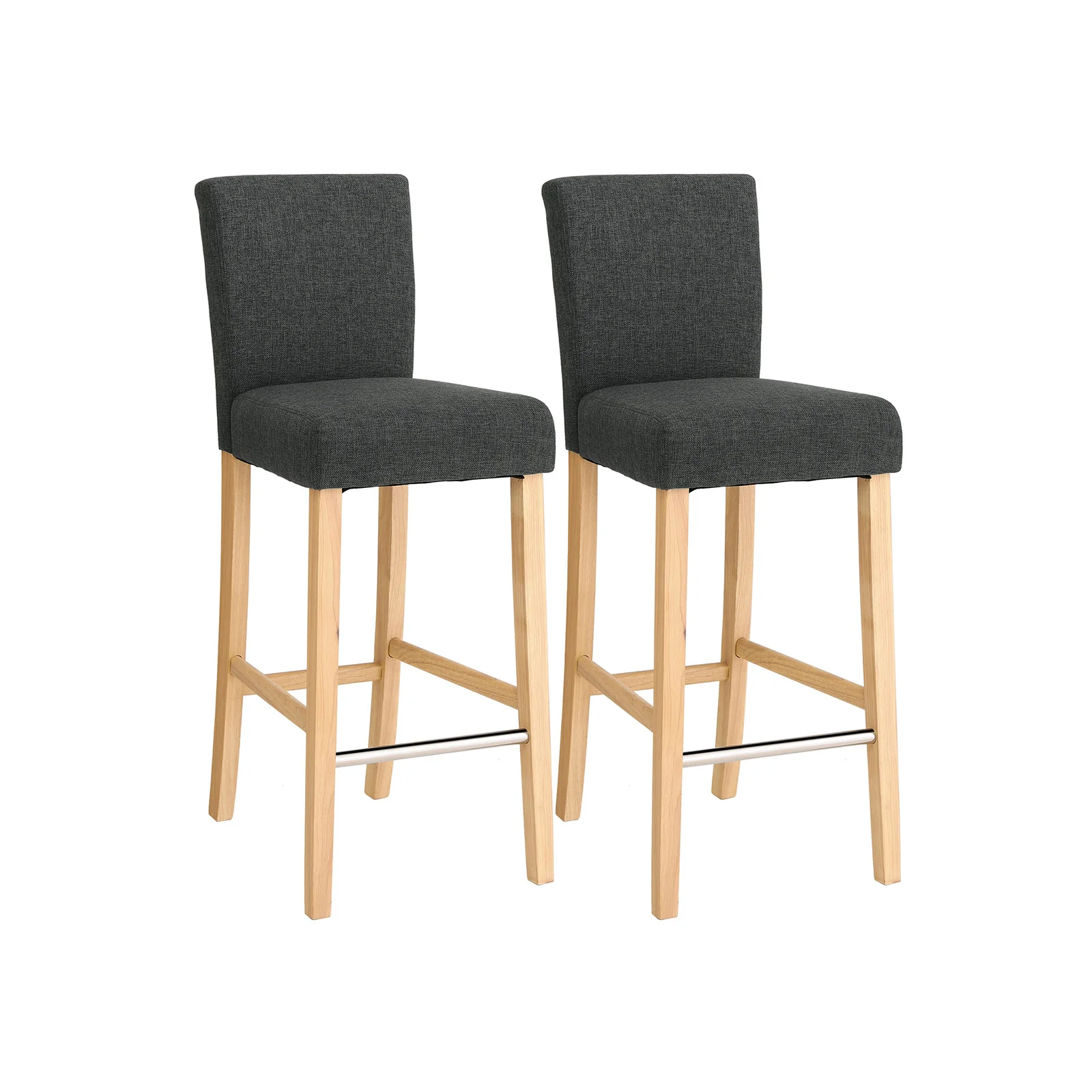 SONGMICS Conjunto de 2 taburetes de bar, Silla acolchada tapizada en tela de lino, Altura del asiento de 76 cm, Patas altas de madera maciza, con Reposapiés y respaldo, Gris oscuro y natural, LDC31GY
