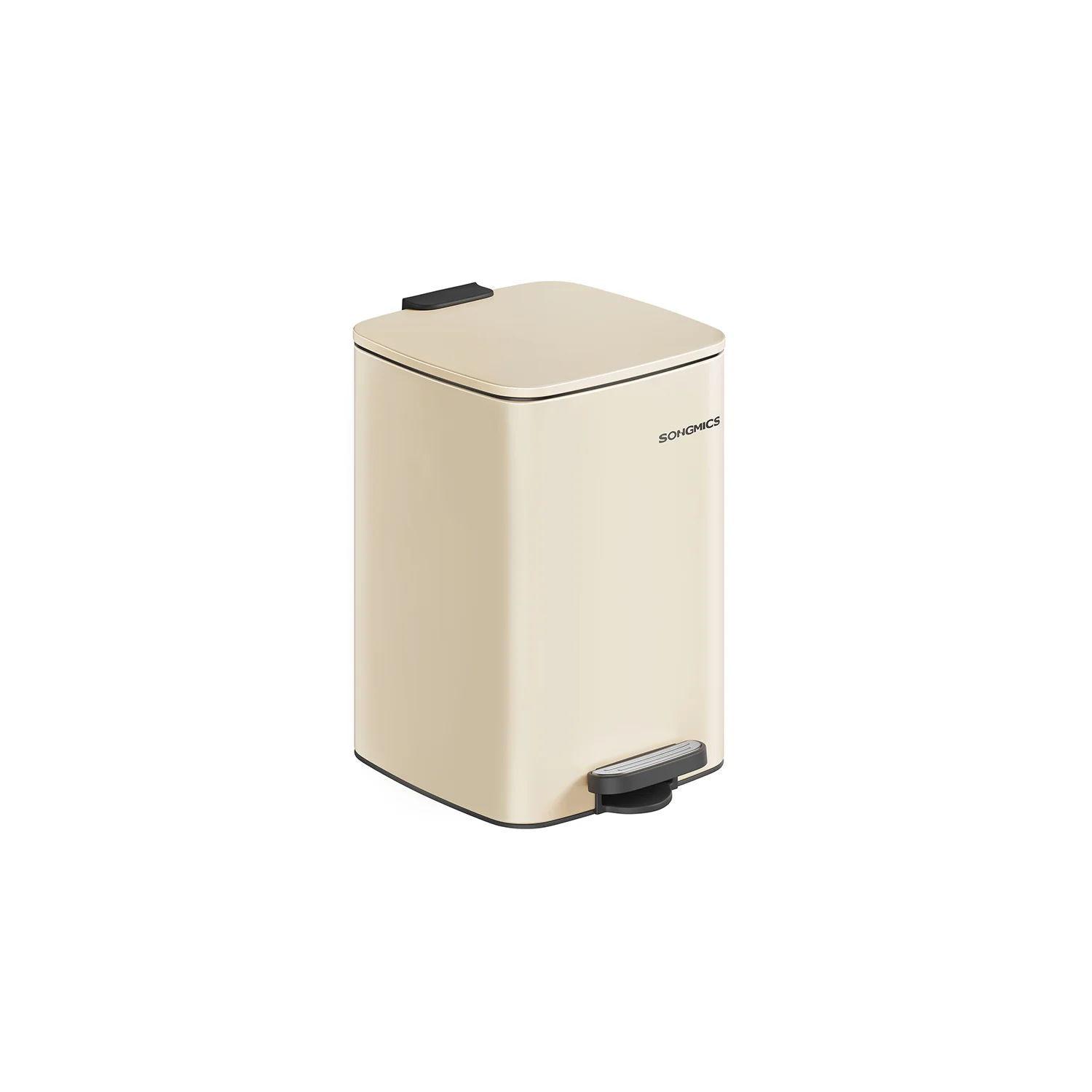 SONGMICS Cubo de Basura, Cubo de Basura de 30 L, Cubo de Basura de Cocina de Acero Inoxidable, con Cubo Interior, Cierre Suave y Permanece Abierto, Beige Arena LTB593A02