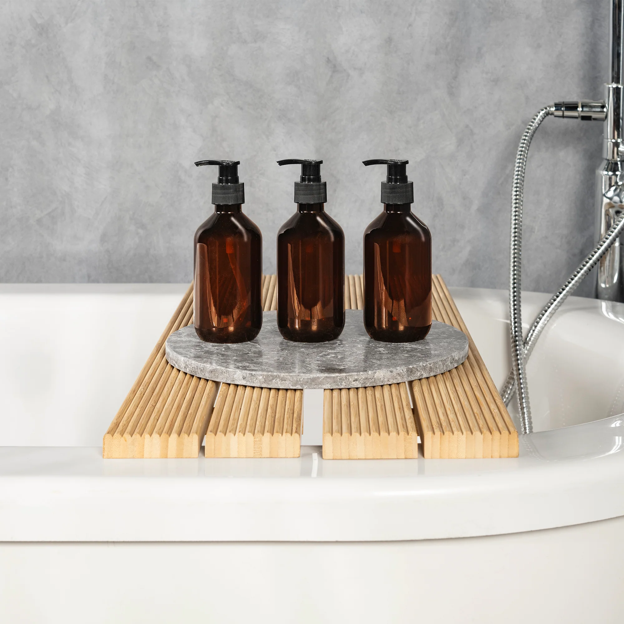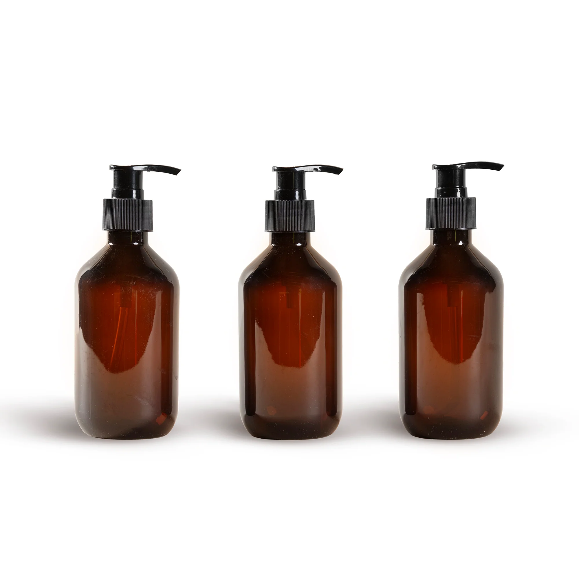 Set de 3 dispensadores de jabón con diseño minimalista color ámbar, un excelente complemento para tu baño.