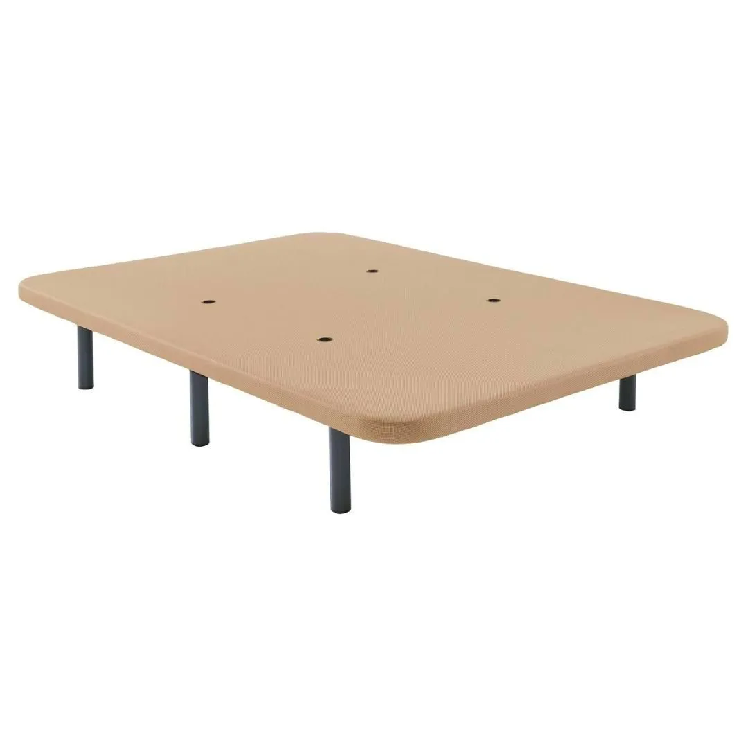 Resistente, transpirable, fuerte y muy estable. La base tapizada transpirable que estabas buscando. Una base tapizada con patas incluidas muy estable. Cuenta con una estructura de con bastidor metálicos, 5 barras horizontales, 2 longitudinales, 6 apoyos metálicos y una base en tejido 3D beige con 4 canales de ventilación que fomenta la ventilación hacia tu colchón para ofrecer un descanso más cómodo.
