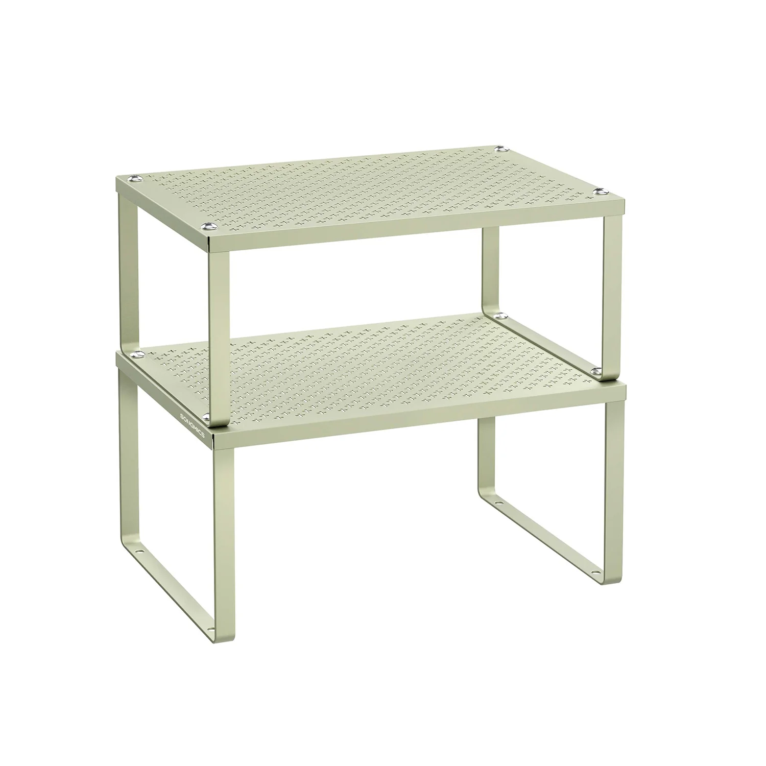 SONGMICS Especiero, Estante para Especias, Organizador para Armarios, para Mostradores, Elevador de Estantes, Apilable, Ampliable, Juego de 2 Estantes Metálicos para Cocina, Negro Tinta KCS001B01