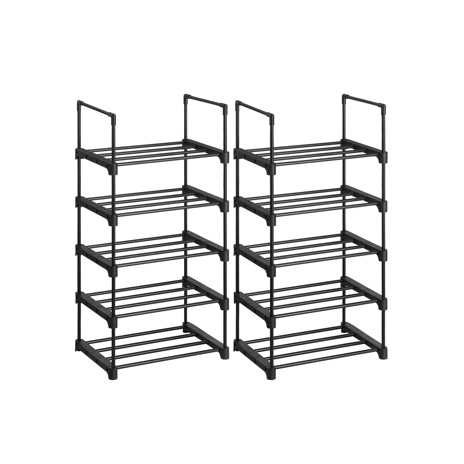 SONGMICS Estante Zapatero, Estante para Zapatos, Juego de 2, 5 Niveles, Metal, Apilable, Ahorra Espacio, Almacenaje Zapato, Multifuncional, para el Pasillo, Dormitorio, Sala de Estar, Negro LSA055B02